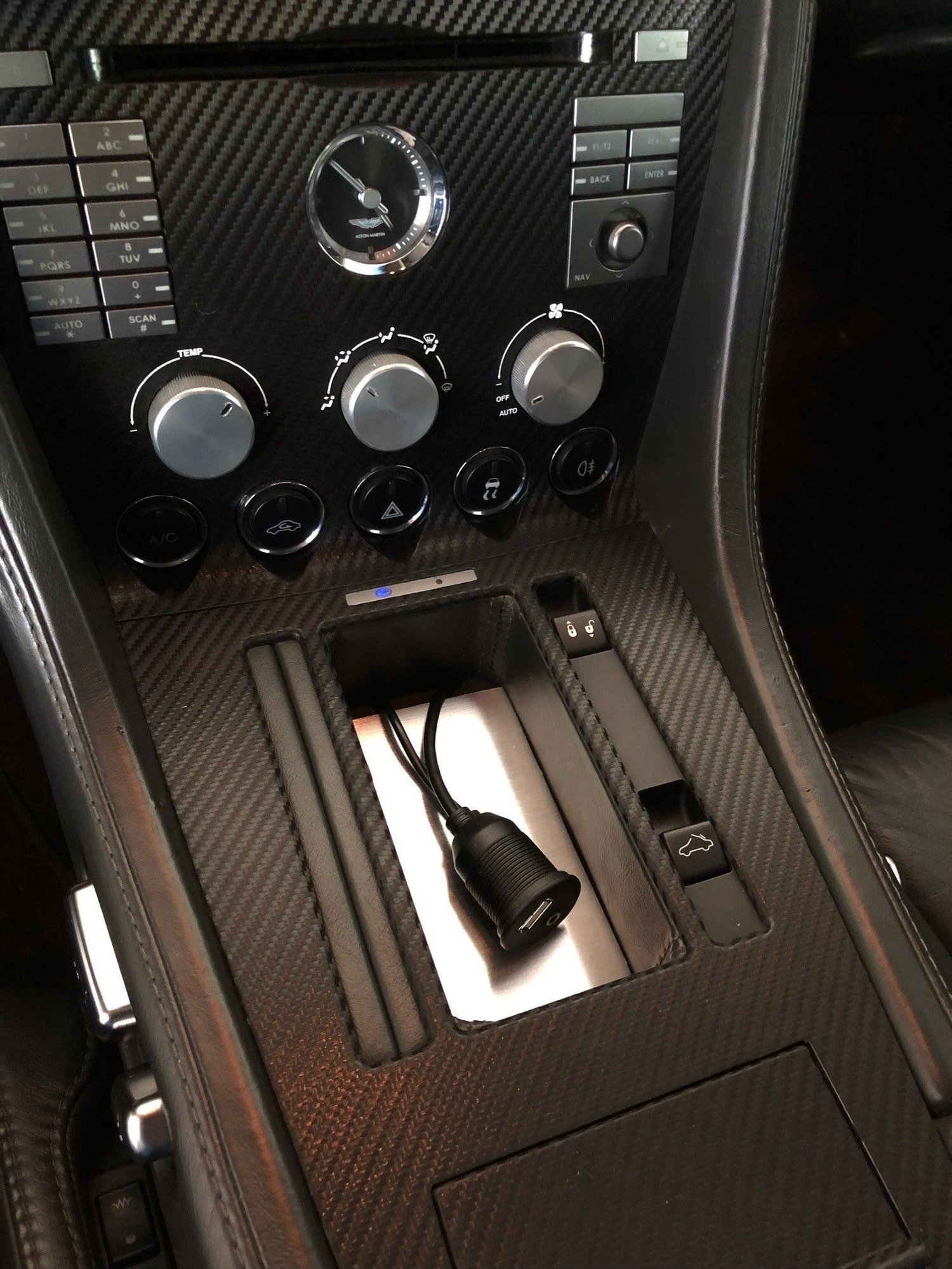 A few years ago I had my '06 DB9's wood refinished, and while the pieces were out I decided to install Grom's Bluetooth interface and do a few other things (like having some of the interior plastic bits wrapped and replacing the plastic transmission selector buttons with the glass buttons). The Grom installation has been very useful: my car will now play any music I have stored on or stream with my iPhone, and I also now have a USB input and an audio AUX input available.