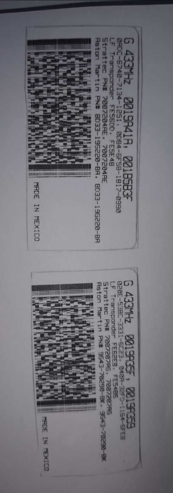 Once the CEM is replaced, AM are saying they need the keys “barcode” to recalibrate the keys to start the engine. I don’t have this, nor does the previous owner so AM asking me to replace both keys (at great expense!). Below is an example of the code.