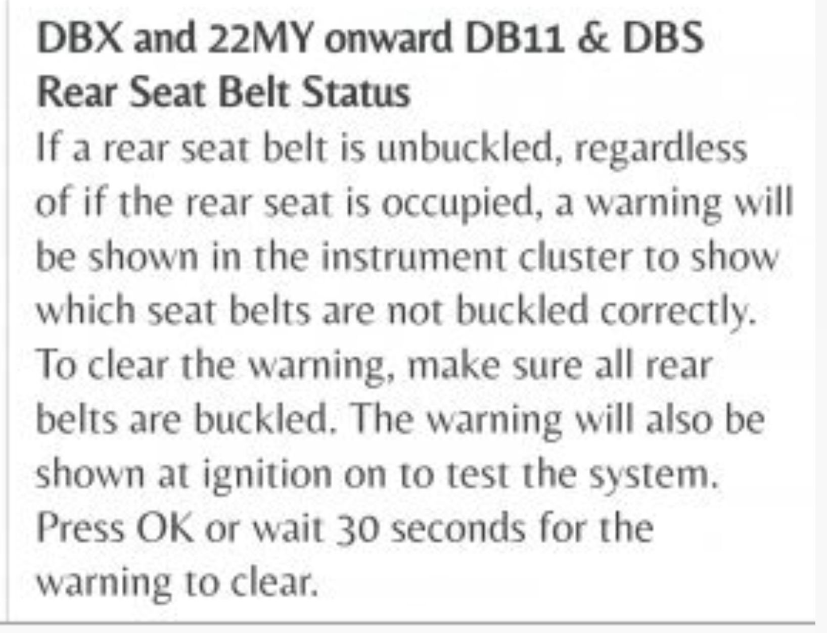 Hello everyone. I’m a long time lurker first time poster. Finally got my first Aston. The car is perfect except for one little thing. Every time I turn on the car, the dash shows an overhead interior image with the back seats highlighted in red. I understand it’s a seat belt warning for passengers in the back, but there is no one in the back. Nothing. Is this normal?