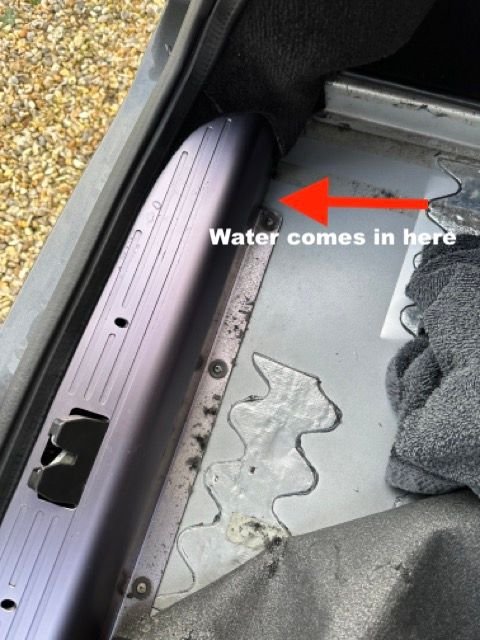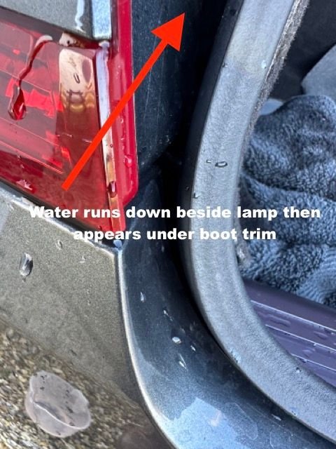Hi guys, wonder if anyone can point in right direction. I have a boot leak on nearside rear. I thought it may be the rear lamp seals but after pulling back carpet and running water down rear screen to test, the water actually seeps out from under the boot trim (as per pic attached). If I pour water on top of the rear lamp, it obviously flows down the side and is then coming out from under the boot trim. I assume I ned to take rear lamp out to check, just wondered if there is anything behind there I should be checking for, or any ideas what may be causing the leak ?