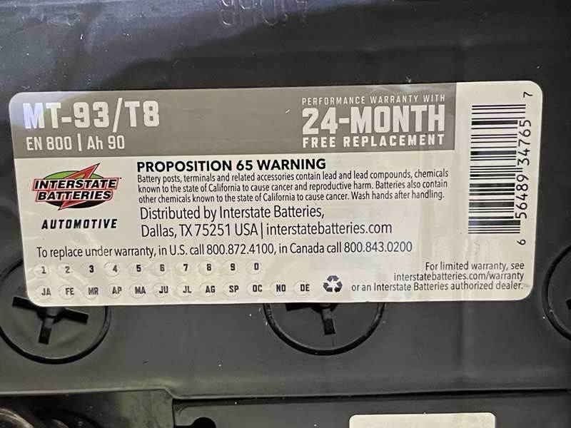 I decided to replace this battery with an AGM Duracell, available from my local Sams Club. The old battery was an Interstate T8 Ah 90. The new battery is an Duracell AGM H8 CCA 850 92Ah.