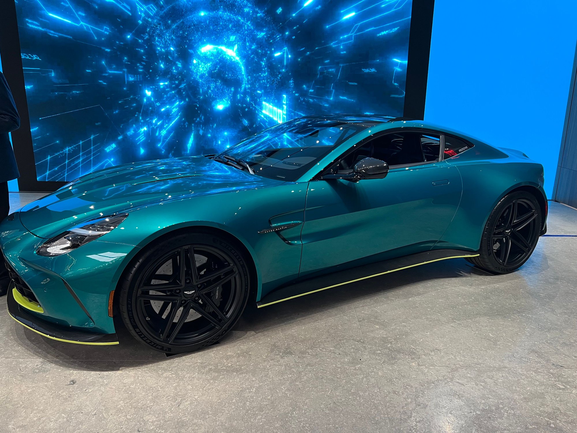 Here’s the new Vantage in real life. The Q store in NYC had a preview model available this week. You notice the extra width right away. The front end also looks great (although I like my Hunter grille). The most obvious change is in the interior and the new info/entertainment system from the DB12 is a much needed upgrade from the old Mercedes system. The only part of the interior that still looks like a Mercedes part is the steering wheel. The sales rep expected to have the new Vantage available for test drives later in Q2.