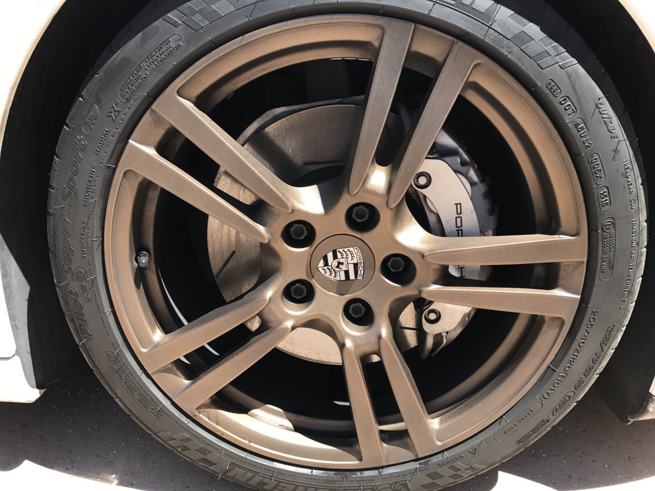 All exterior trim and rear badges have been wrapped in black. Wheels have been professionally powder coated metallic bronze. A beautiful color that is a unique alternative to black.