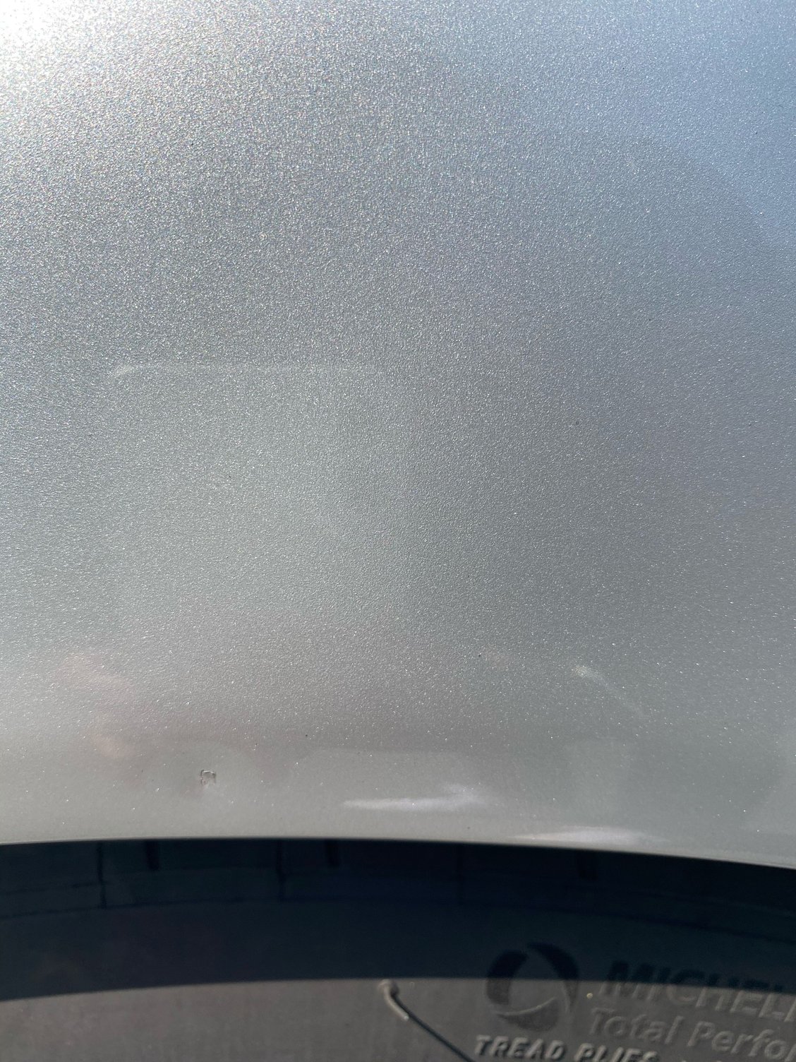 Two cosmetic defects, both pictured below. There is a slight blemish on the paint of the engine cover and there is also a small ding above the right rear tire