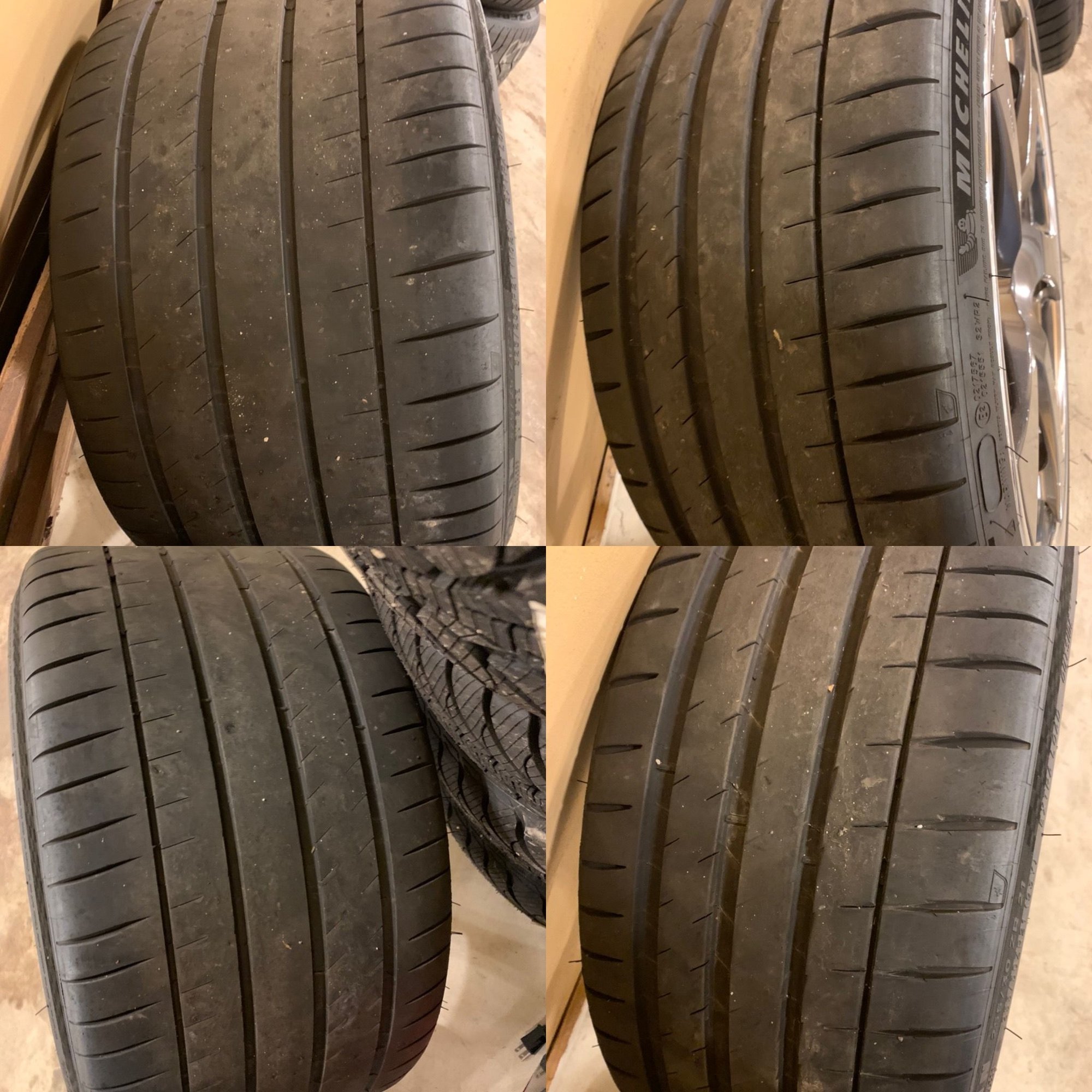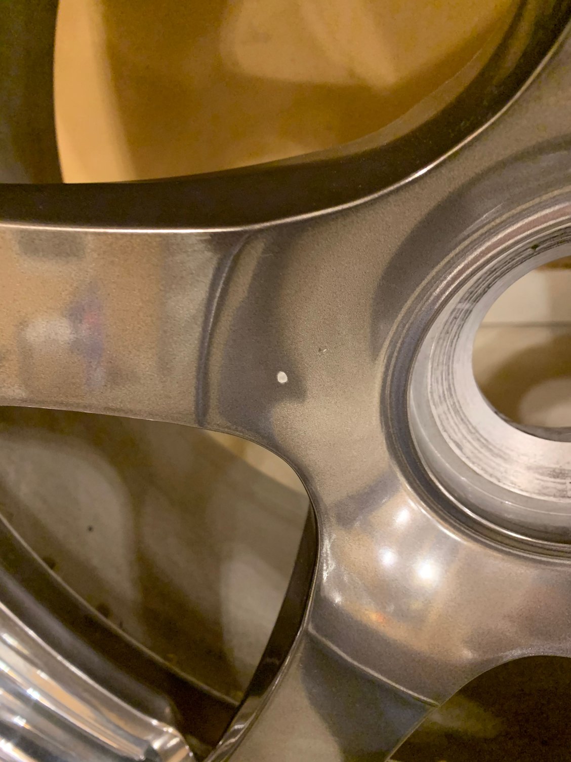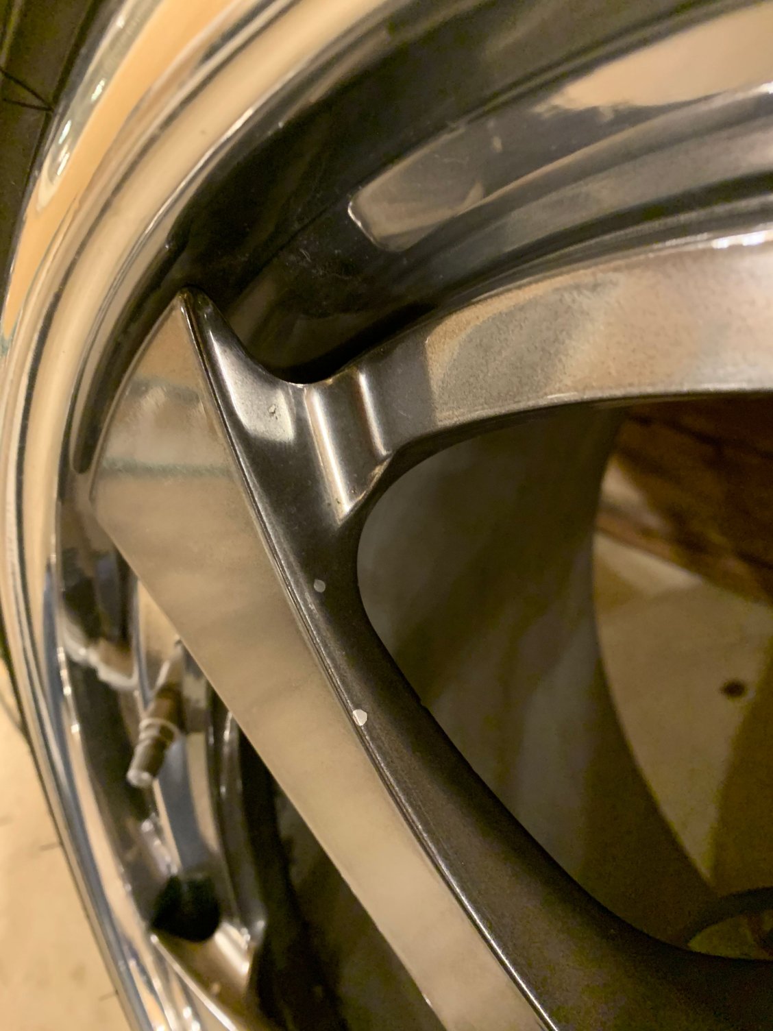 There are a few rock chips from normal use that I’ve attached pics of - one of the front wheels has a slight abrasion/scrape on the convex portion of outer lip which I’ve attached (you can’t see it if ur over 12” away from the car /wheel)
