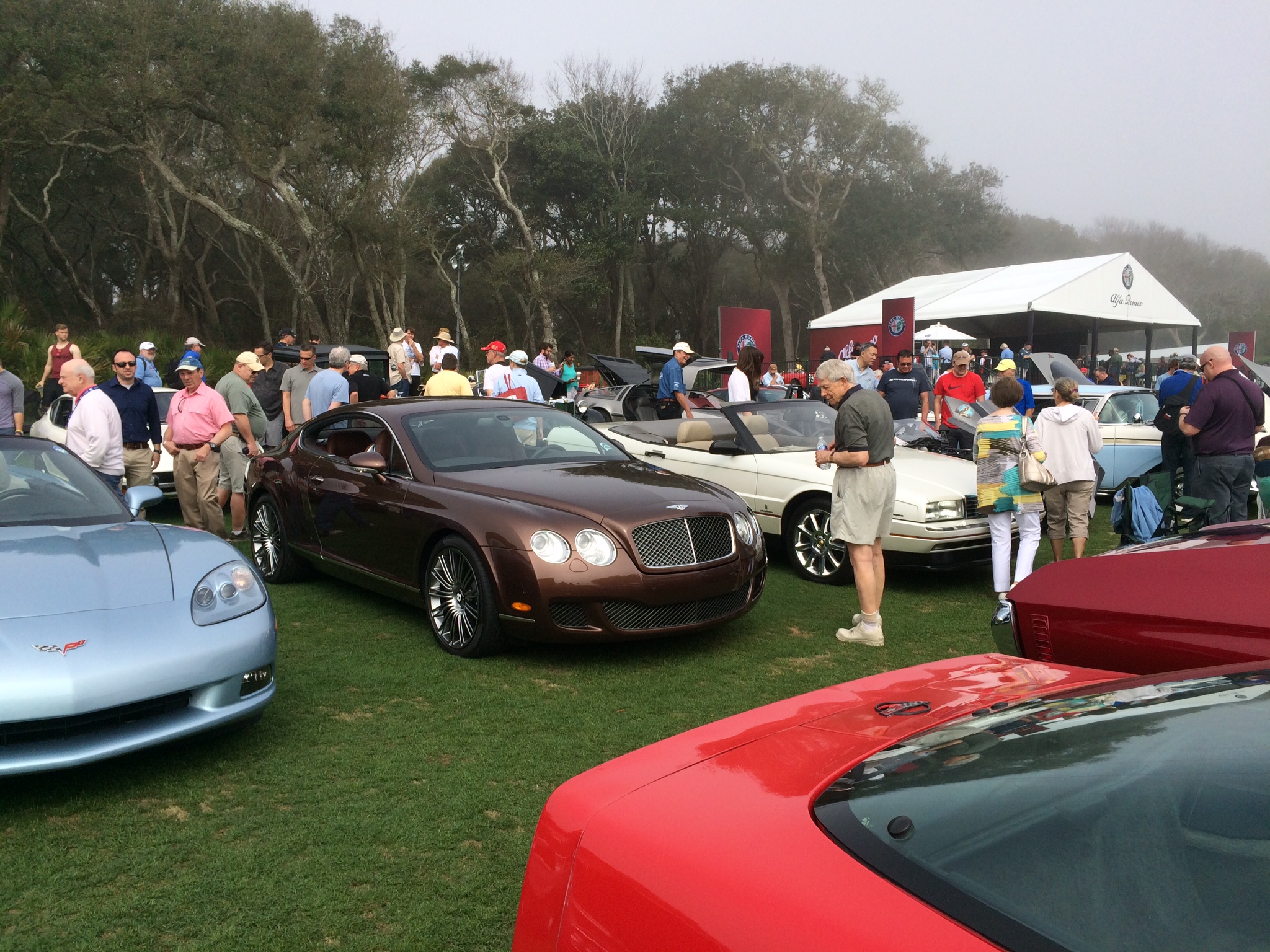 I am at Amelia island this weekend for the events, and while at dinner I spotted an early continental GTC in what looked like dark sapphire with a royal blue top and 19" alloys. Anyone on the forums?