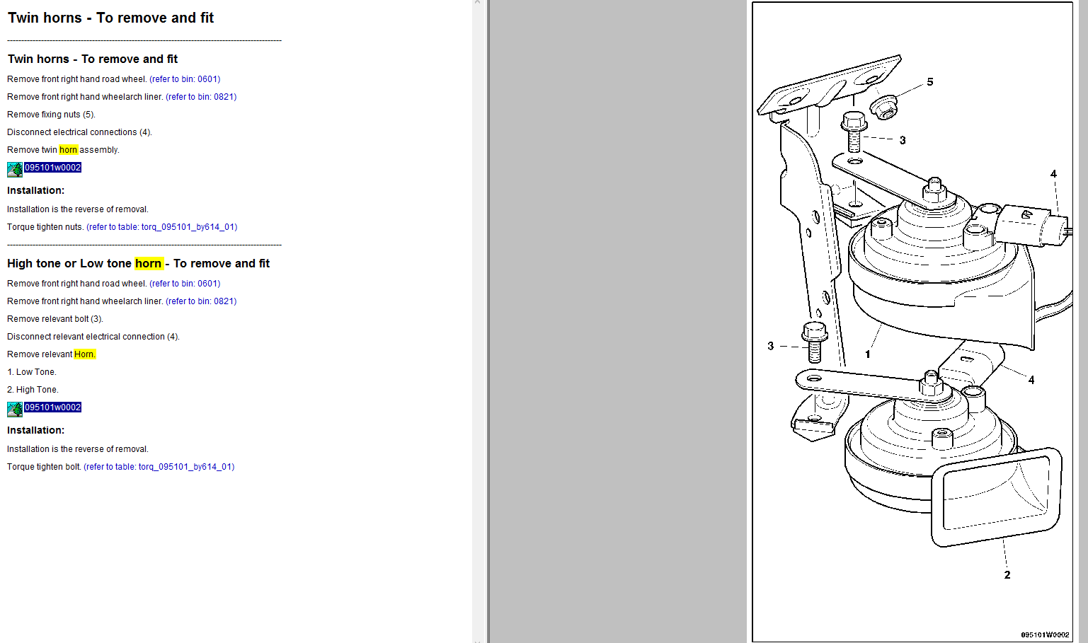 2) Remove the right front wheel, then remove the right front fender well liner, then attack the two horns from 'behind'.