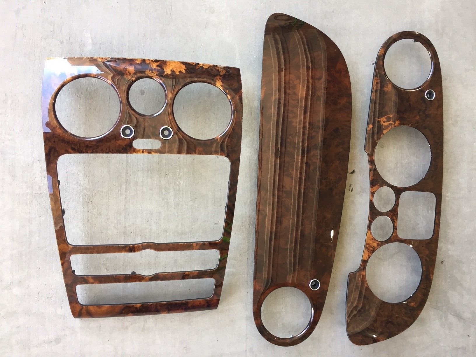 Some select Burl Walnut dash insert pieces to piano black.