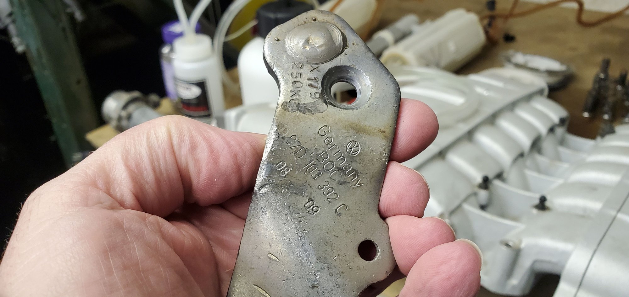 Here are pictures of the lifting points on the W12, now, just to note, of the six or so W12 engines I have had ranging from 2005 to 2014, and the last one being the 2011 Supersports engine, only two came with both lifting point brackets installed, all others had one or the other, meaning, either right rear bracket, or left front bracket installed, so lucky I had one of each to use, and yes, the intake manifold must be removed, and I take it, you are only looking to support the engine in place while you drop the whole subframe for some reason, as the engine will not come out the top 😀.
