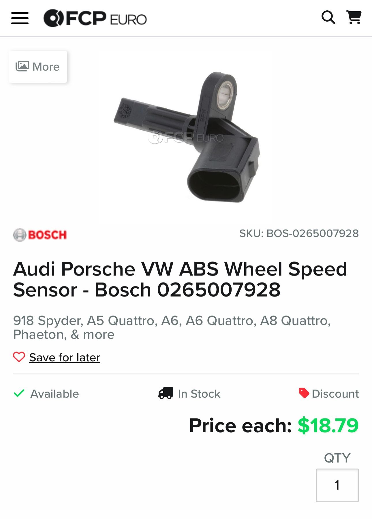 Just a note, when I went in to try and see what was available, I found one picture of someone selling the factory part number and from the pictures, could see the Bosch part number, which lead me to the FCP site. I am trying to cross a bunch of VW to Bentley parts and it has been working for many of the nuts and bolts so far, but there may be some small differences on some major parts. (For example the Phaeton Antifreeze reserve has a different number of hoses coming out of it than the Bentley's from the pictures.)