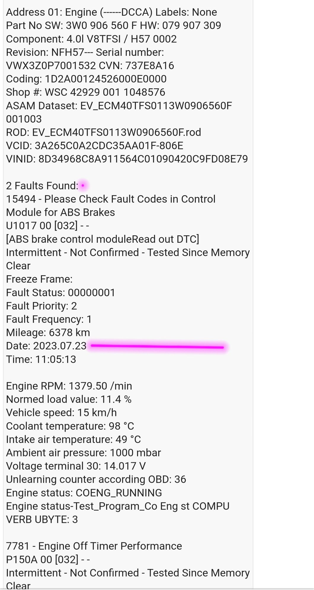 As usual, everything shows good in the scan as it is working, BUT, this scan does show faults from the past in 37 and 56, so I can see that you never cleared them with the mobile version, did you ever clear any faults out of 07 ?
