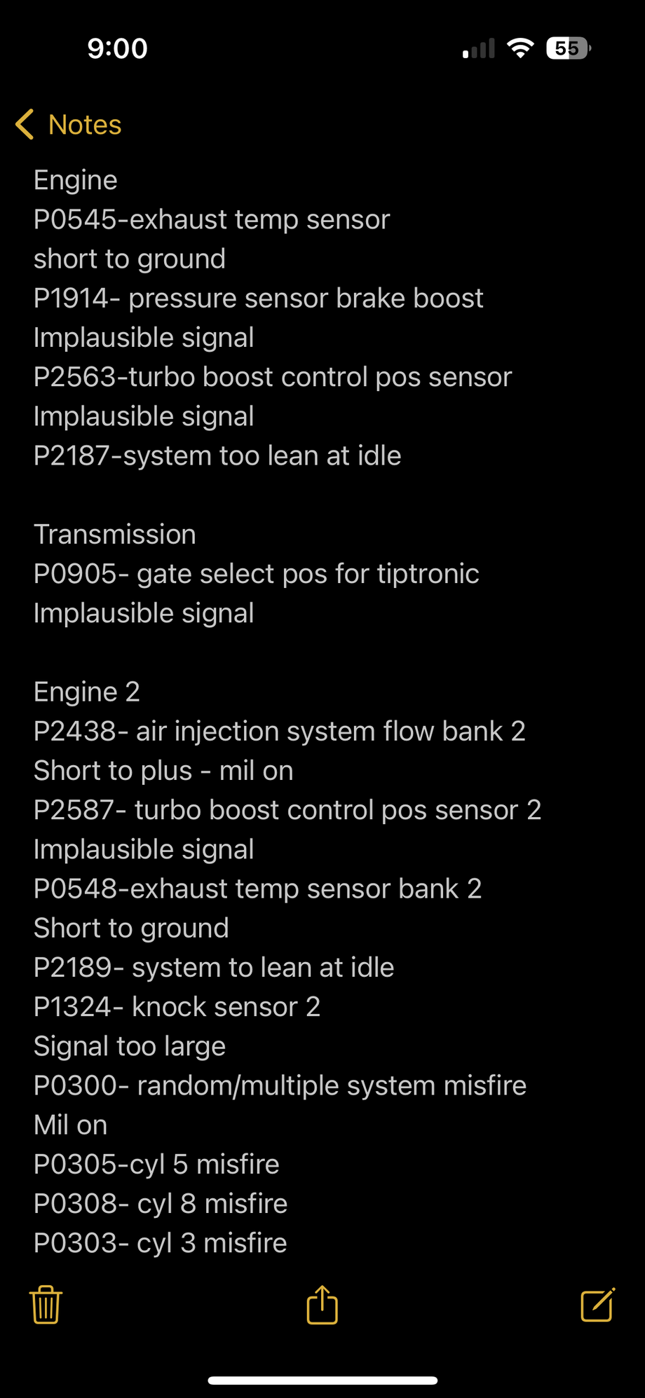 Cleared the codes, batteries are at 100%. Still getting codes (see pic attached). I did verify the exhaust temp sensors are bad and have ordered those. As far as the others guys have any suggestions or what parts and where to buy?