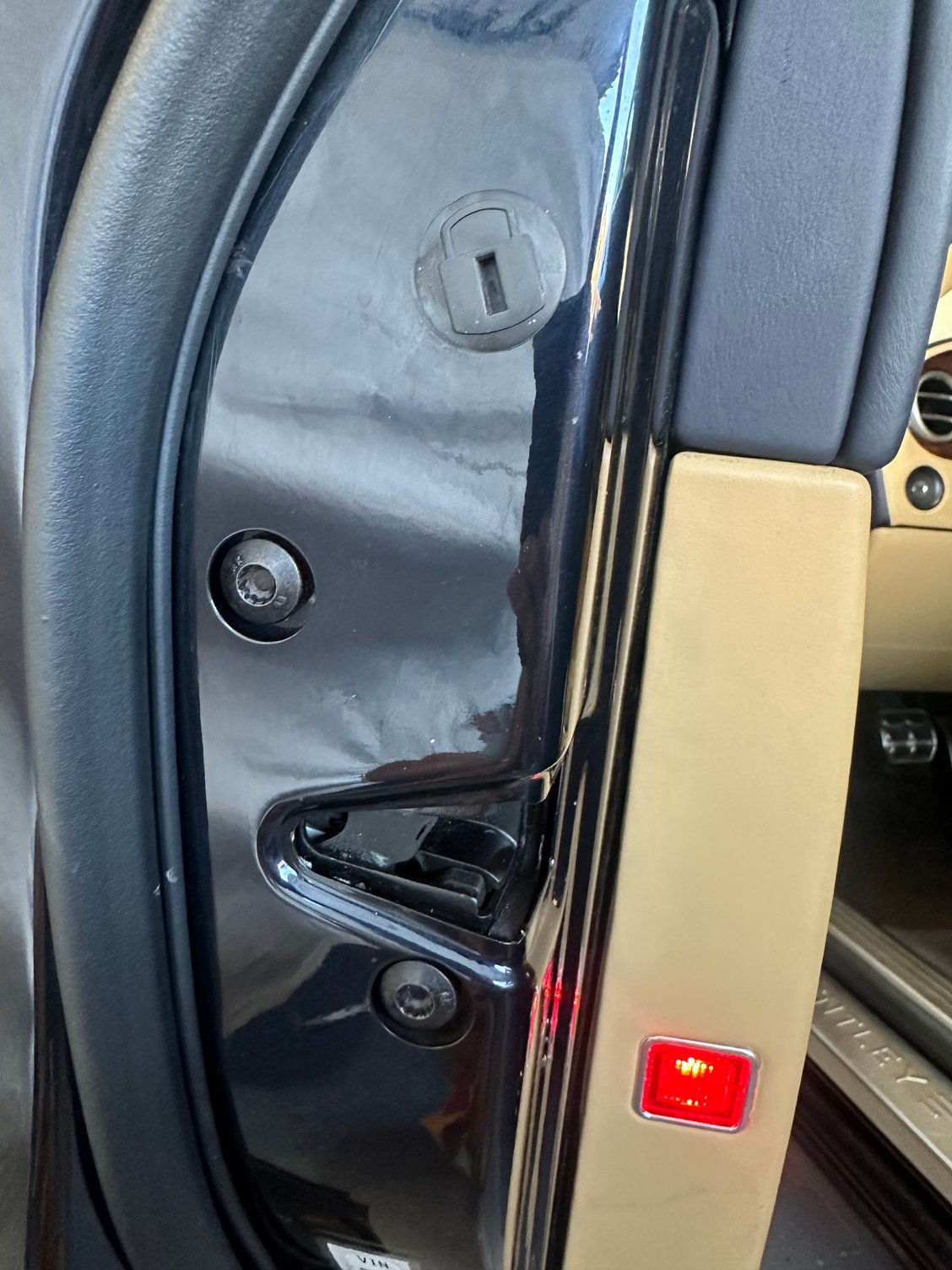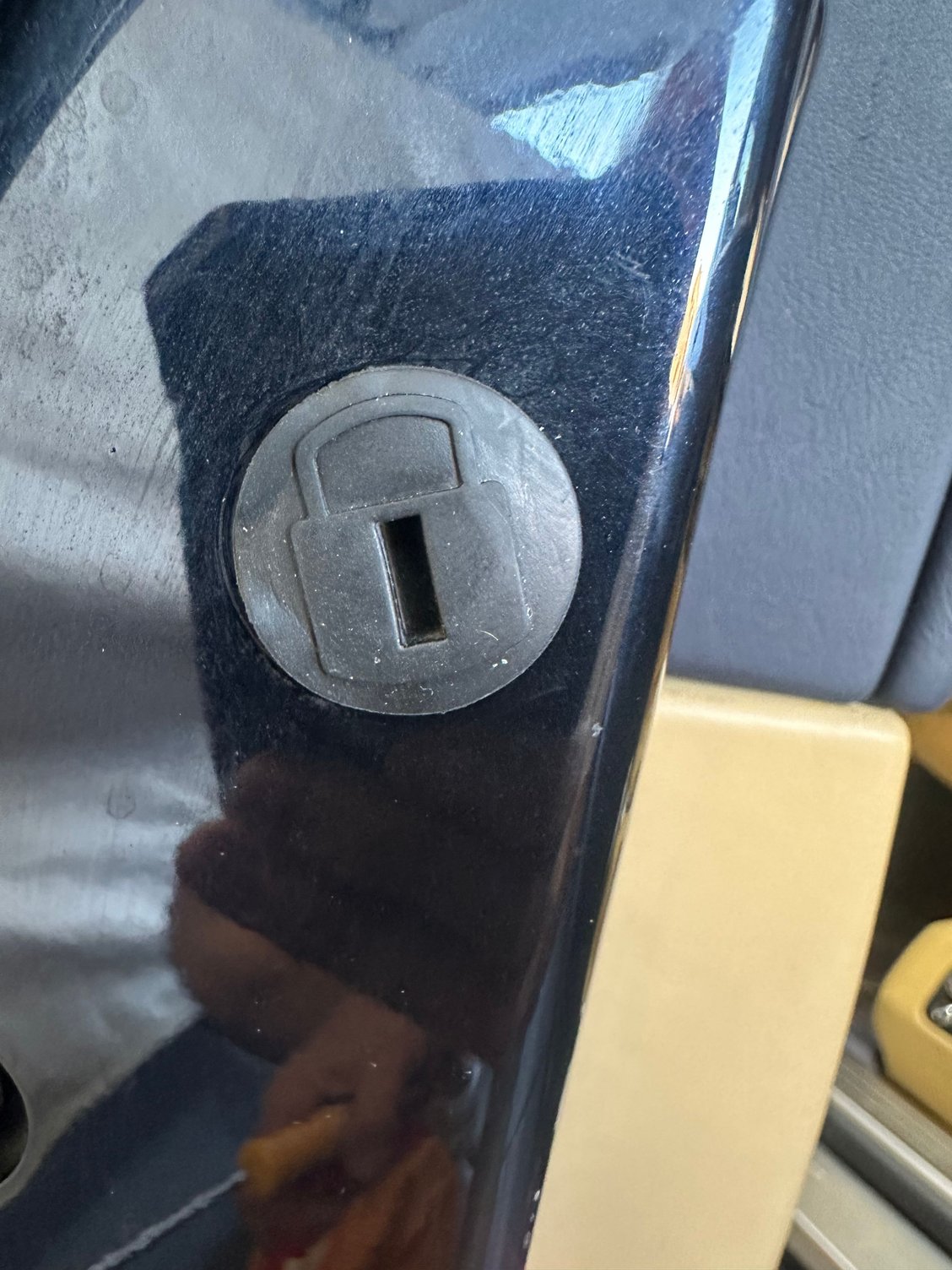 Working on the soft close doors today and noticed just above the two screws holding the door latch there is a rubber grommet with a padlock symbol on it , pulled it out and nothing obvious behind it , same on the passenger door .