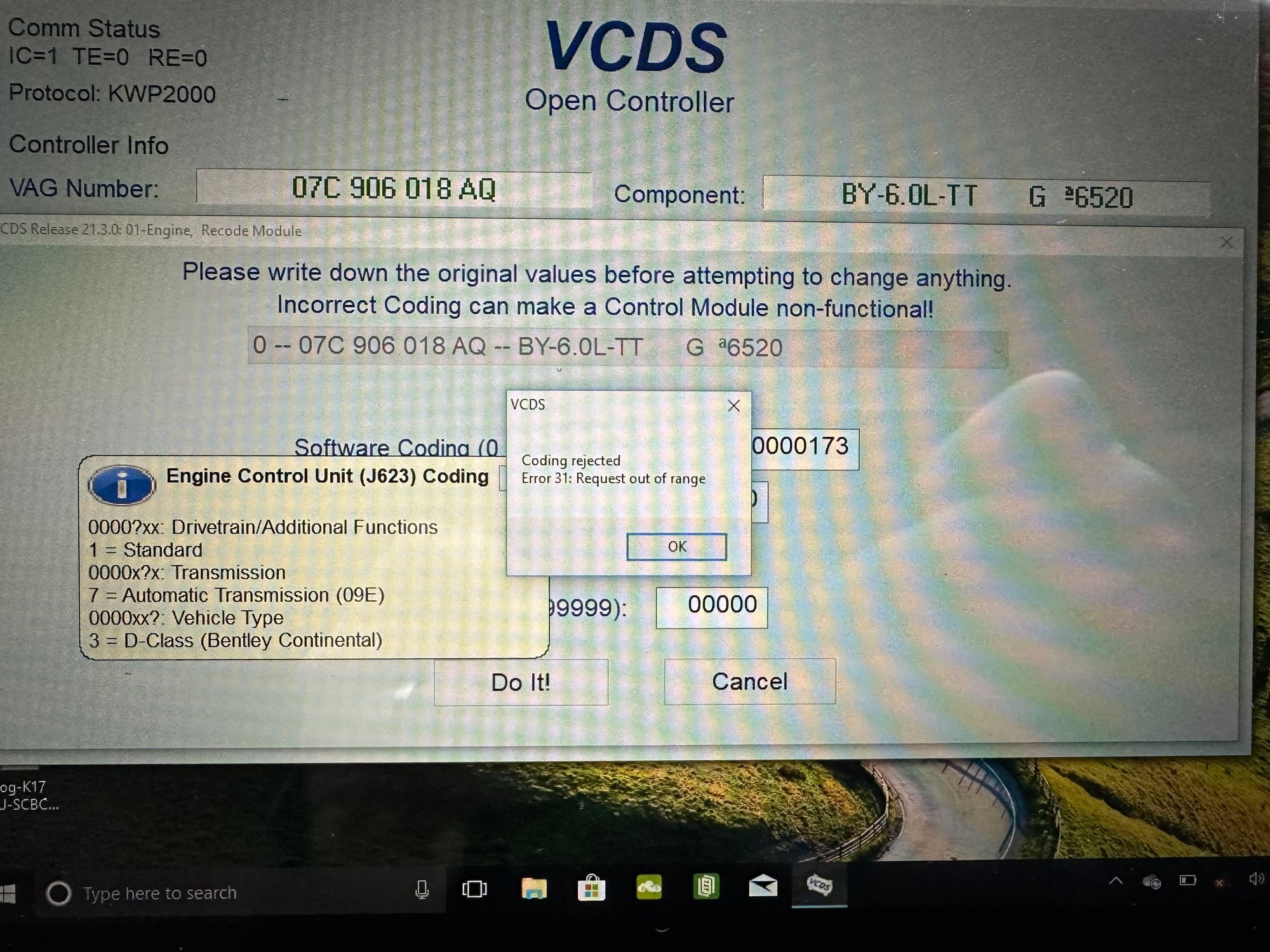 I have a 2005 Continental GT and VCDS is telling me the engine ecu is incorrectly coded! I’ve attached some screenshots to show what is stored in the module.