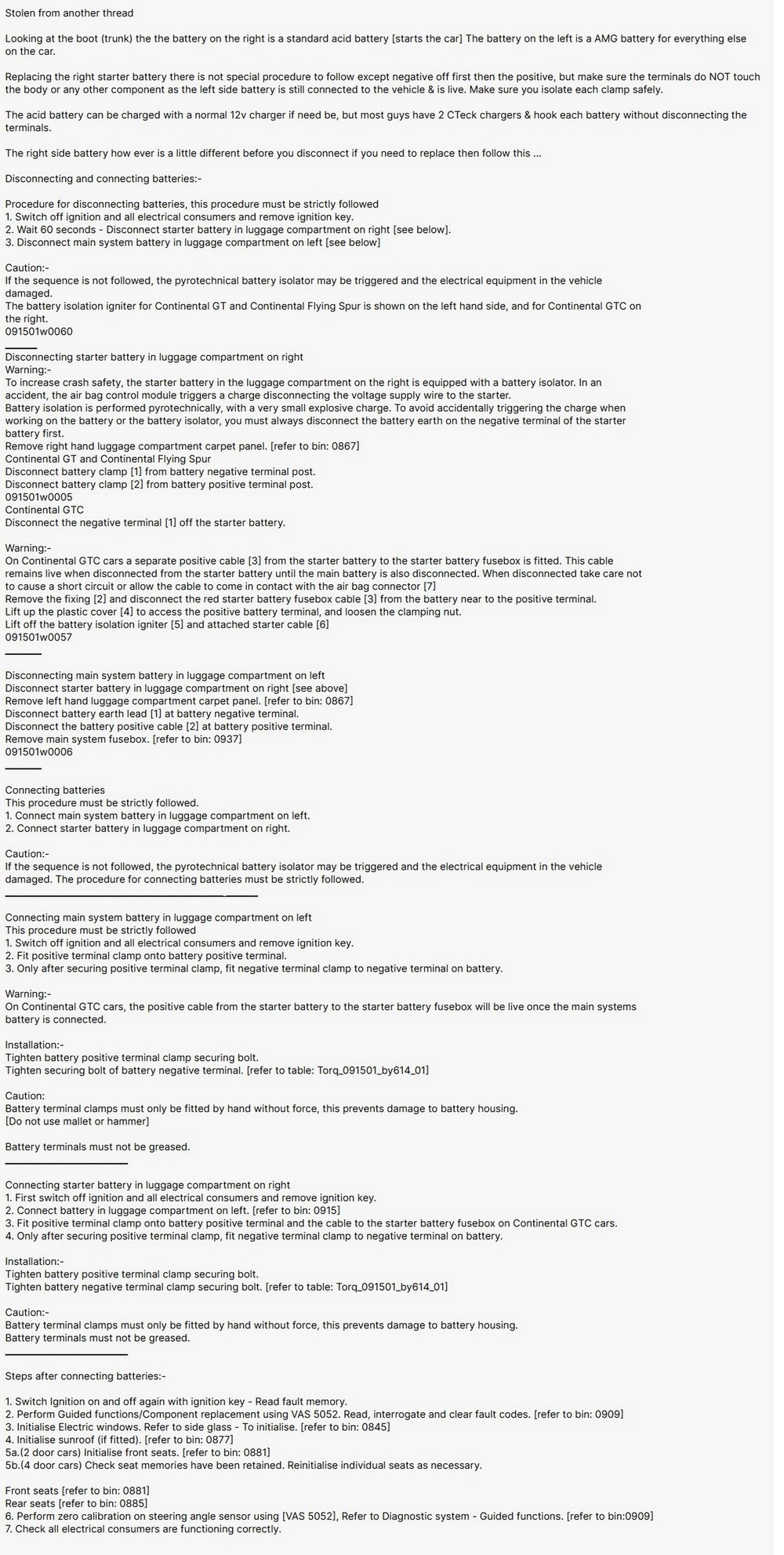 Whilst on the Battery subject ... The manual States when jump starting... Put the Pos to Positive on the Starter Battery ... Put the Neg on the Negative on the House Battery ...This then starts the car for you .. Bentleys way
