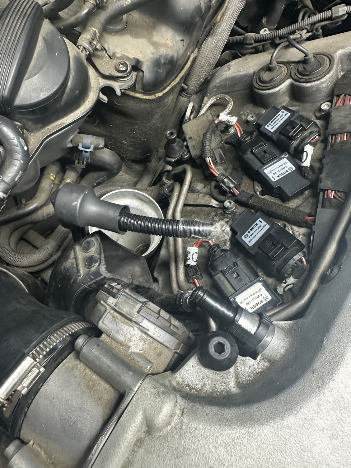 while changing my spark plugs yesterday I broke this hose it was plastic. Does anyone know the name of it and where I can buy it a new one? Would taping it together cause any issues? See images below