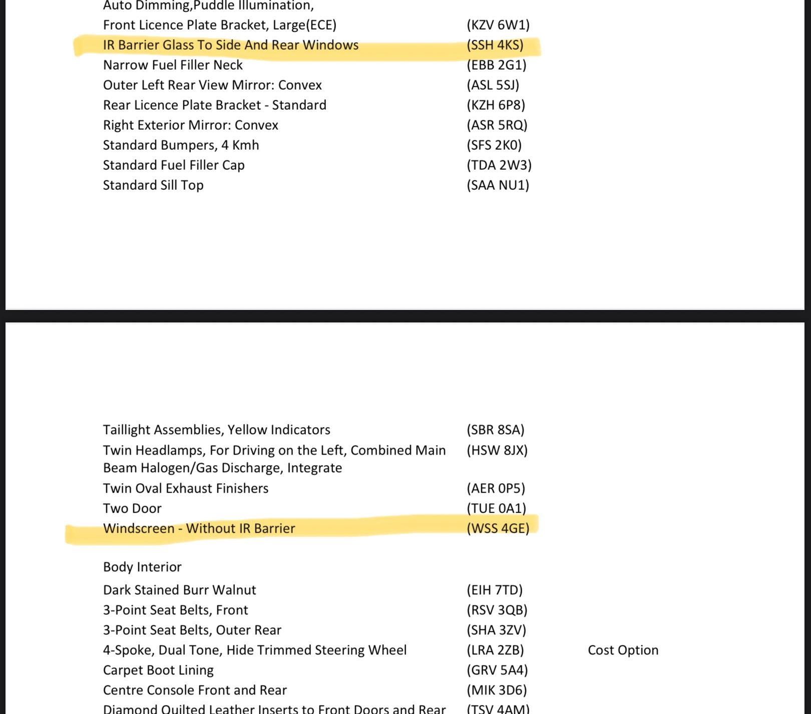I’d now like to do the same to the offending side window, but I’ve been put off by the fact that my cars build sheet states that it has IR side and rear glass, but not IR windscreen glass:
