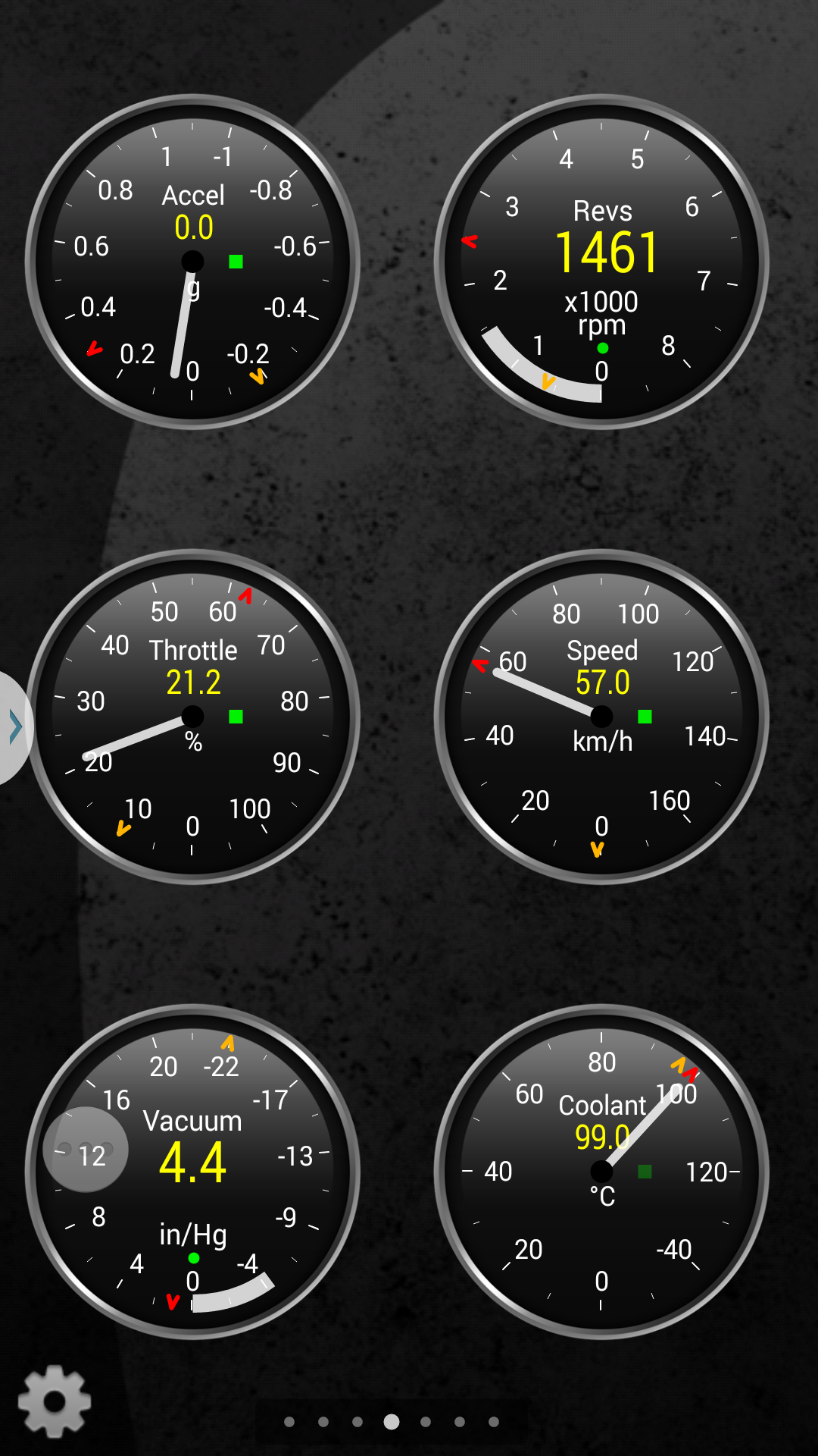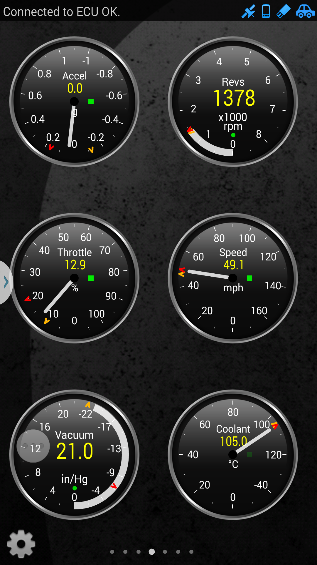 Here are a few more screenshots. Accelerometer apparently comes from phone itself. Haven't played with that. Will likely need to configure and mount phone to see it.