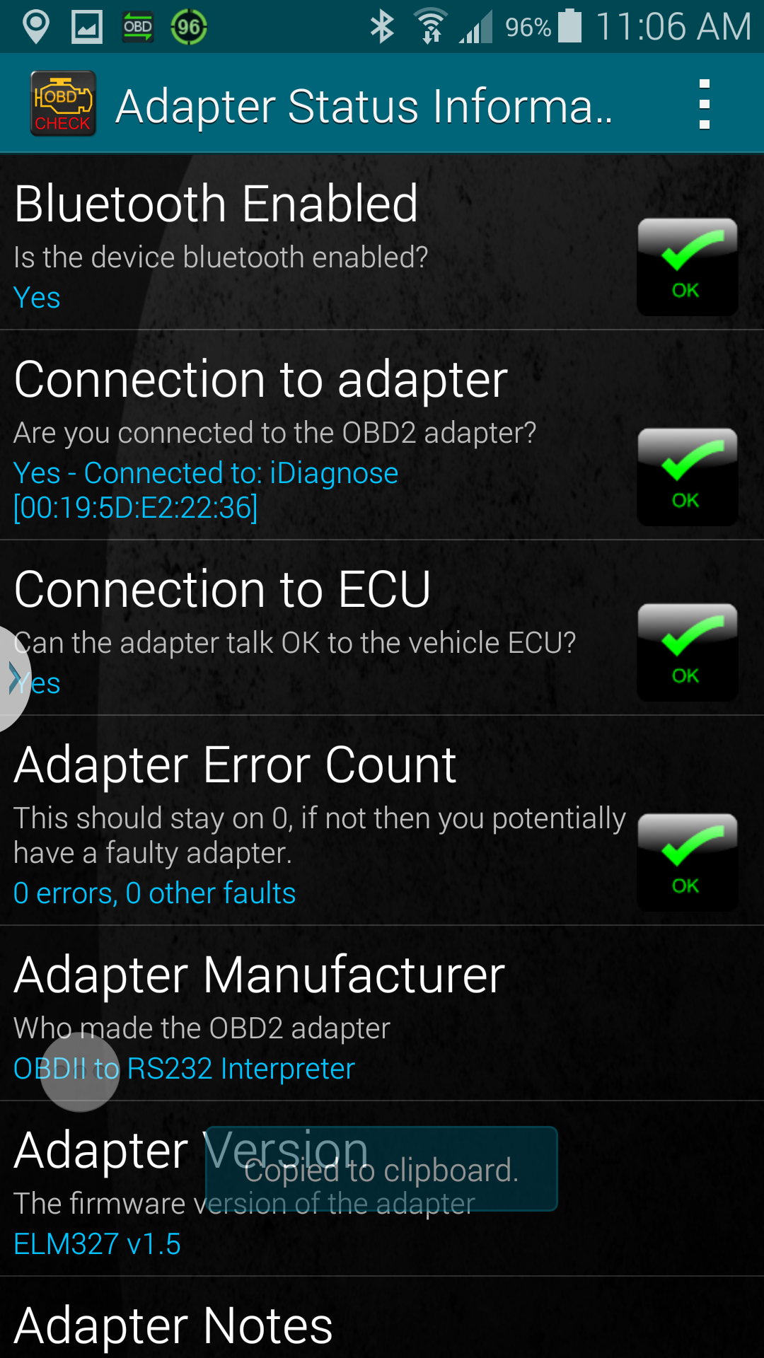 I might do that with my other cell phone.Anyhow, with the small dongle, you get a small CD that has about 5 different ODBII software programs on it. They are all PC based. One of them doesn't require a license. Regardless, I didn't install any of those, rather instead bought the $4.95 Android app "Torque Pro". This was after reading the reviews on Amazon and I'm not disappointed. Resetting fault codes is also a function not mentioned above. I'm even thinking now of another ProClip location to put an Android Tablet to see all the dials when running!