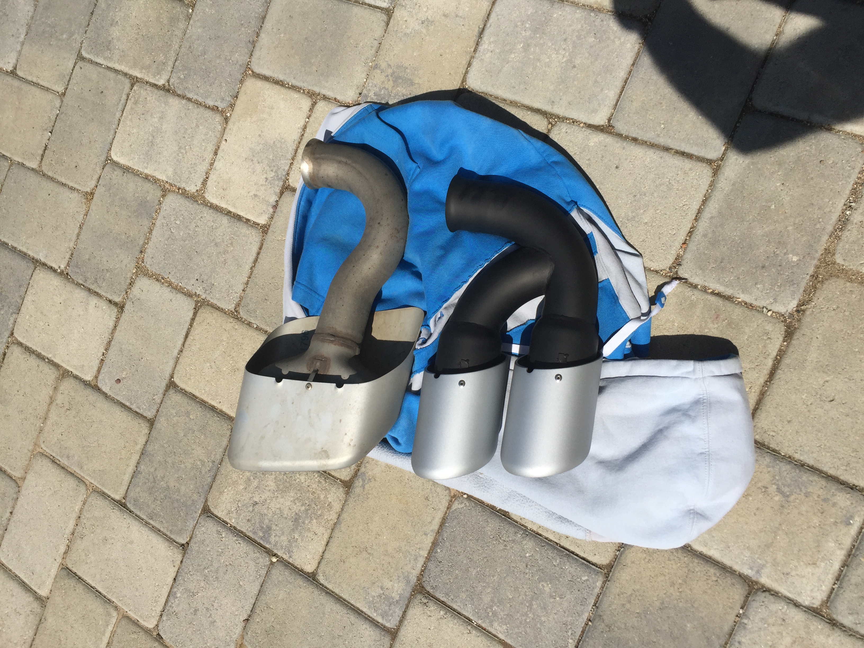 And the best news of the day was that inside all of that packing were my brushed SS finished tips. And here are the pics showing before, during, and after the install.