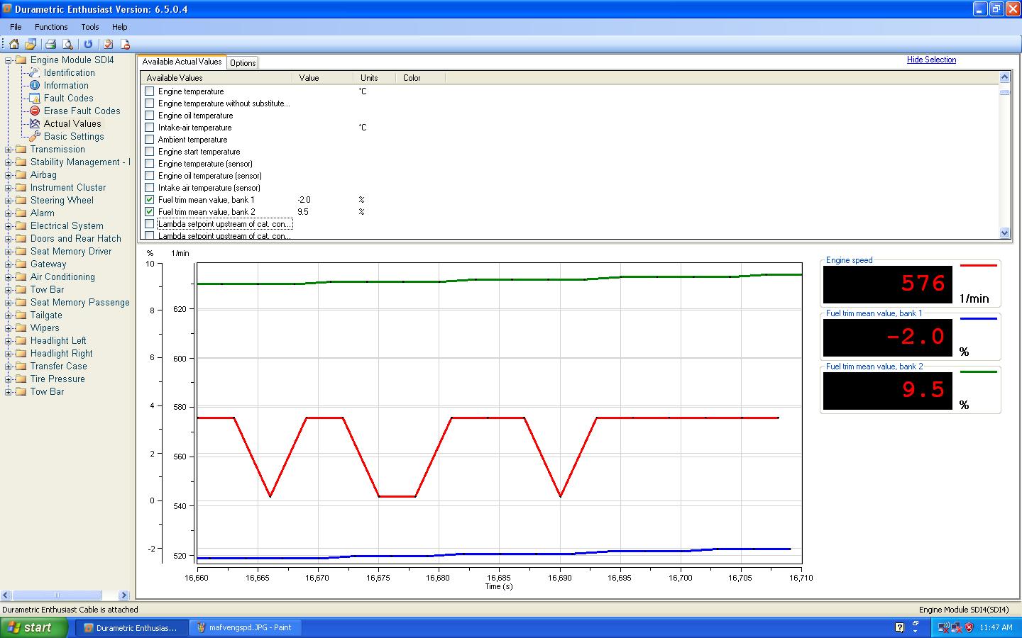 2010 Cayenne S idles rough in the warm weather but seems fine once moving, just stumbing below 1000rpm. When the weather cools off it runs normal. I pulled the computer fuse for 20 seconds and also tried testing the fuel pumps. Cleaned the maf's, swapped the maf's. Reset the computer by taking it completely out for an hour, tried running it with out the mafs. Found a T fitting on a vacuum line on the top of the motor passanger side blocked off, not sure if its a vacuum issue or what here is what durametric says. I have been fighting with this for weeks. I seem to see missfires on bank one all of the time, mostly cyl 3 but get them for all randomly, I have swapped coil packs, plugs, and injectors to the other bank and no change.