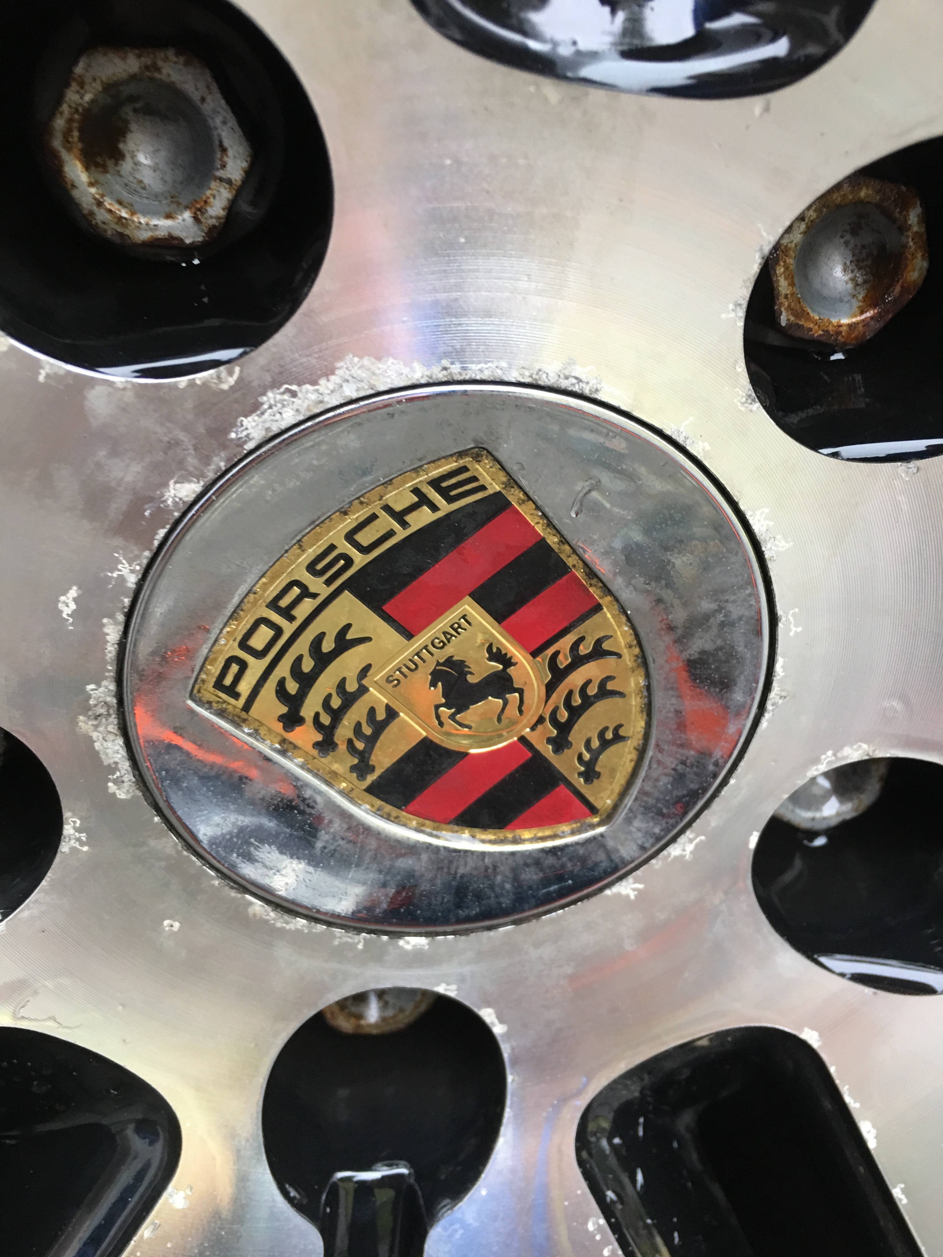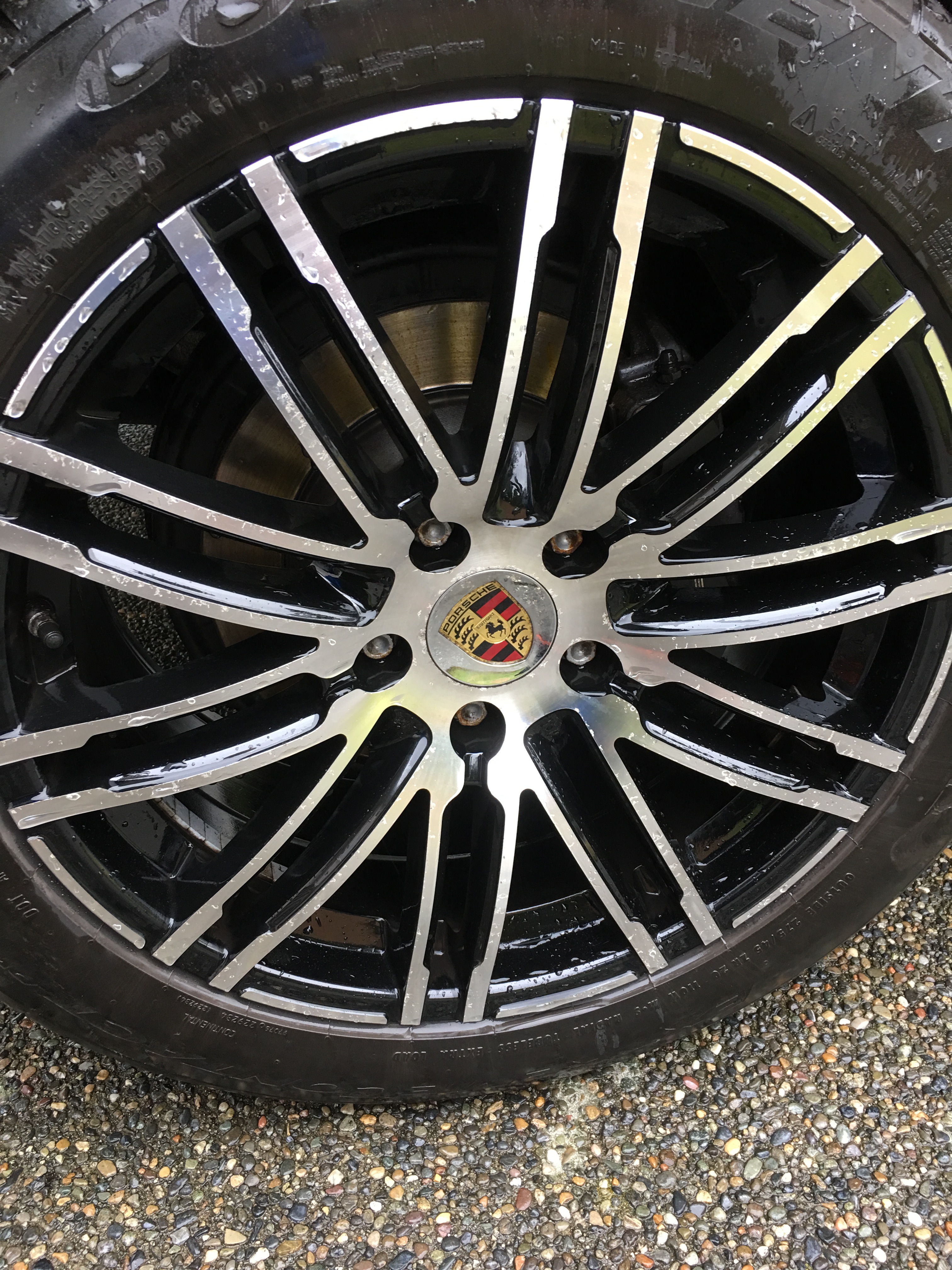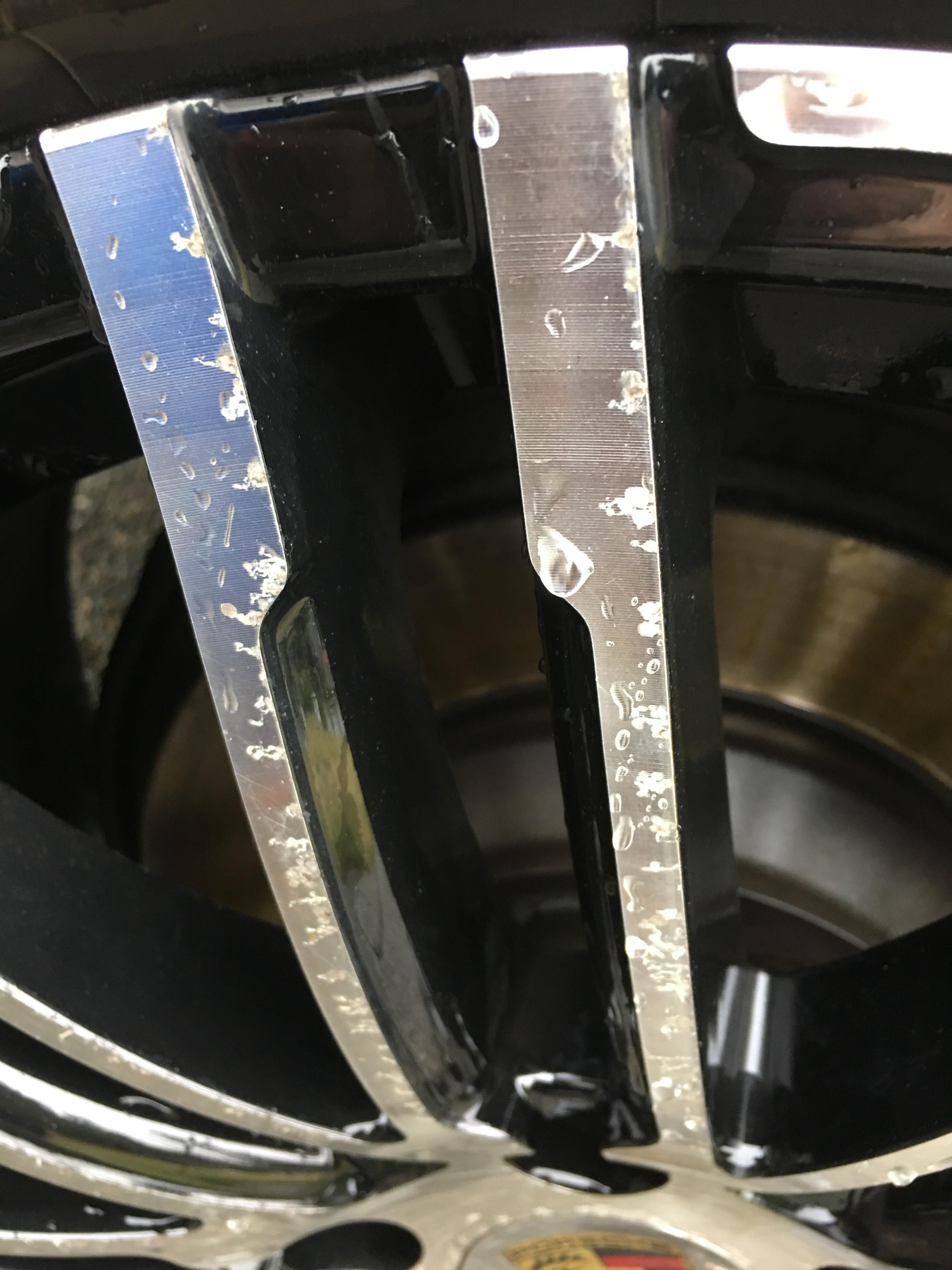 First post here. Recently purchased a 2011 Cayenne base 958 that was a lease return (previous vehicle was a 2004 boxster for 11 years). Previous owner didn't take very good care of the wheels on the cayenne. As you can see from the pictures, the clear coat is coming off and the aluminium underneath may be getting corroded.