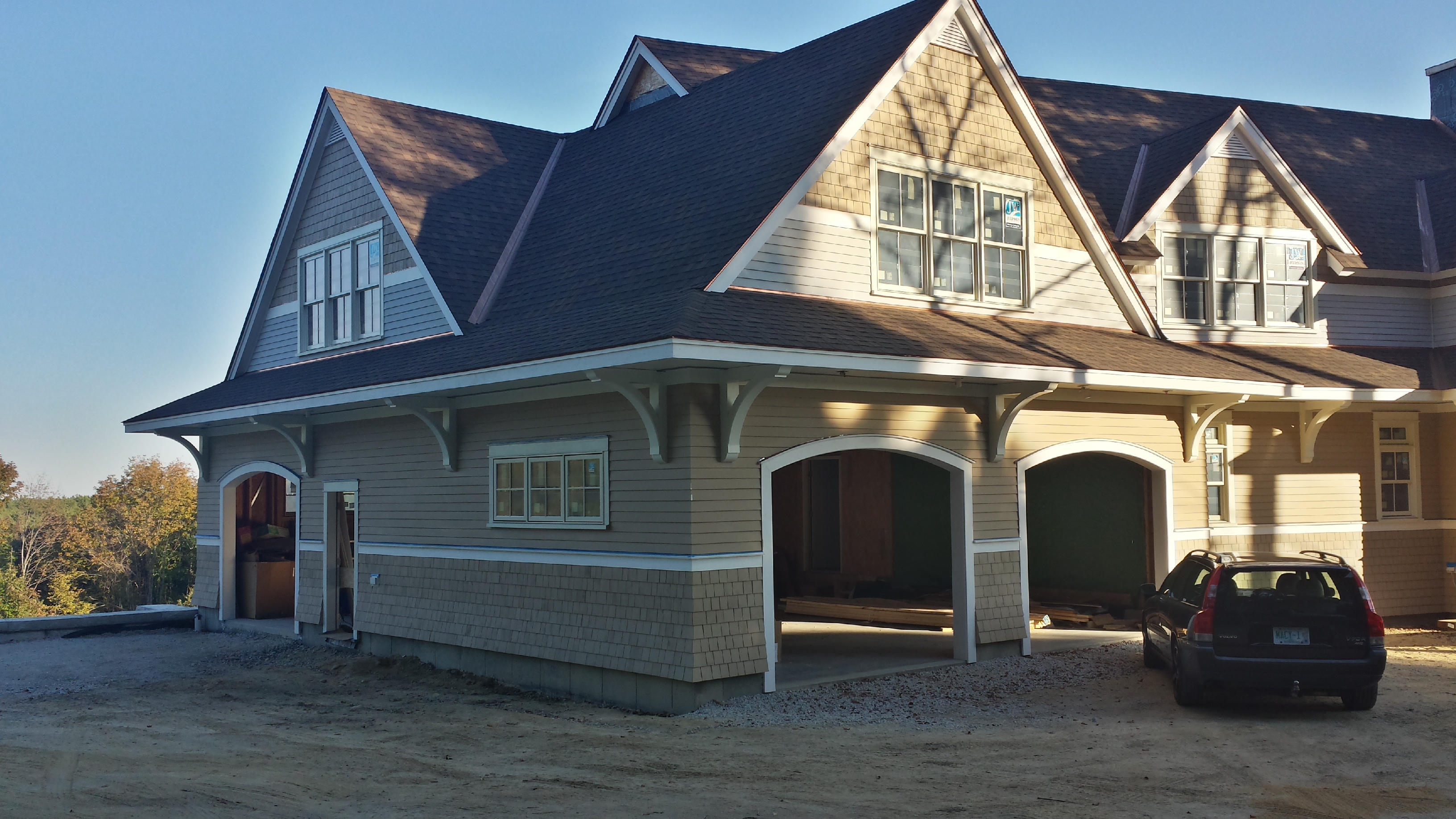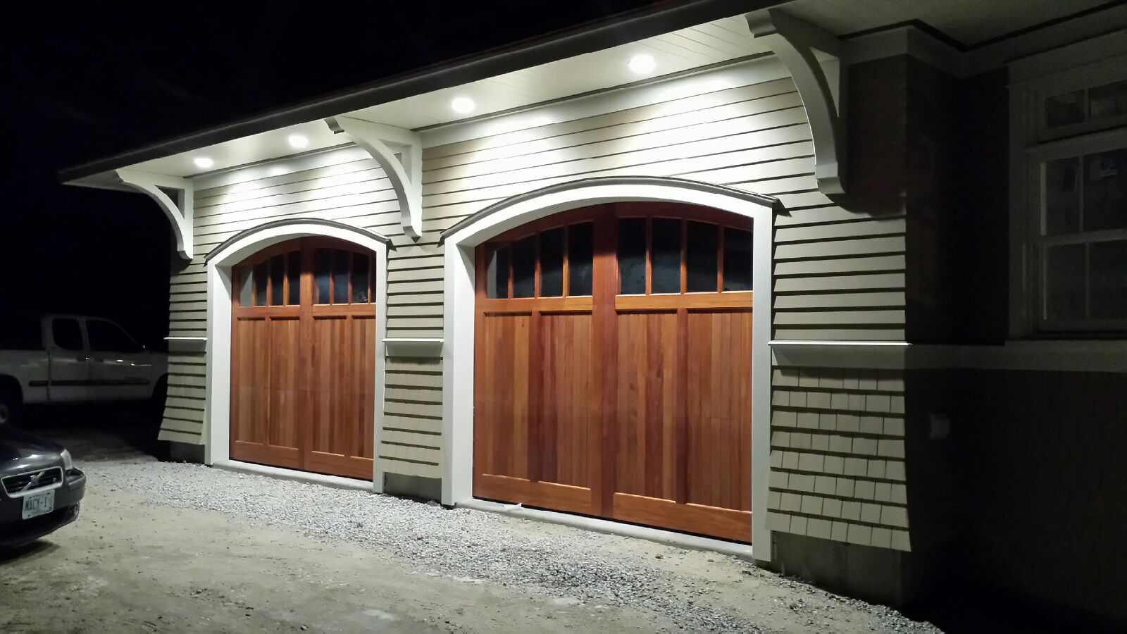 The garage doors are finally on. I had the garage door tracks powder coated matte black and fabricated custom stainless steel door supports instead of galvanized stiffeners. The openers are the Liftmaster 8500 Jackshaft openers are really quiet.