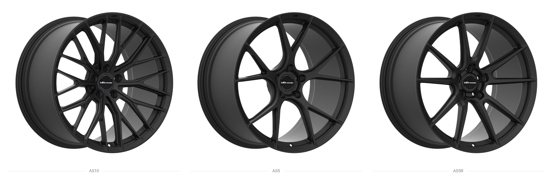 Our customer set, WD Forged AS10 in Brushed Carbon Black Gloss, White Text Fill.