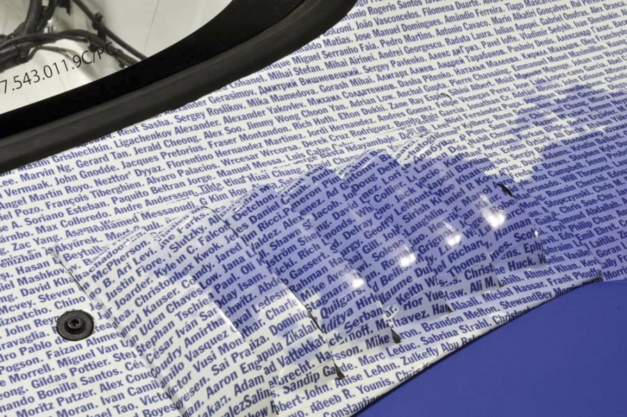 a special example of its 911 GT3 R Hybrid racing car, adorned with the names of more than 27,000