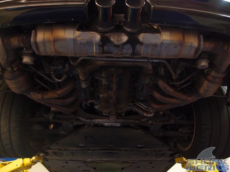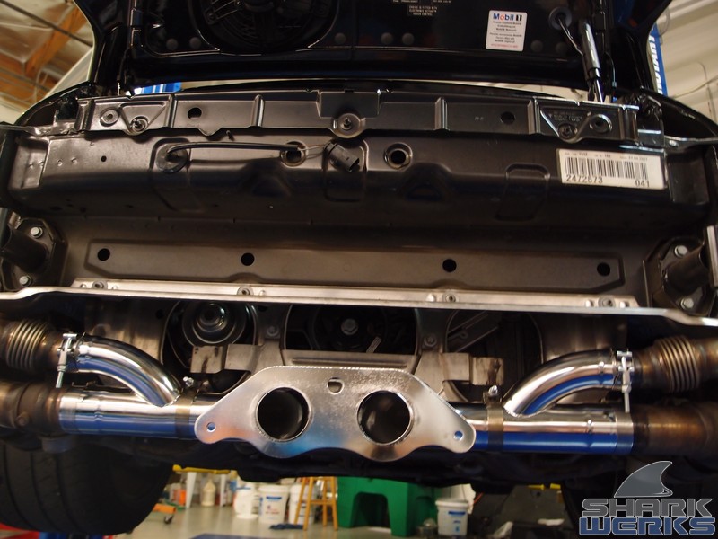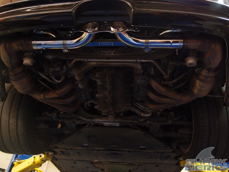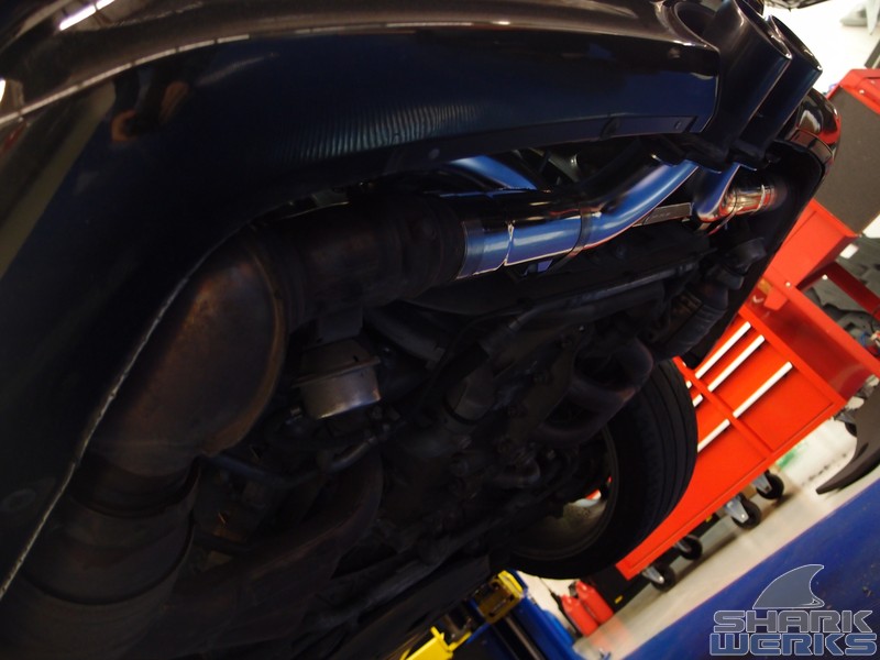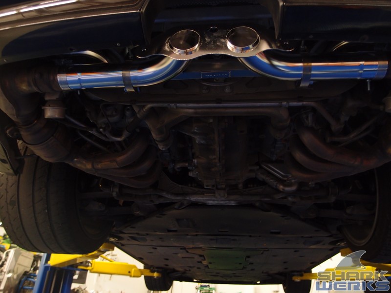 The SharkWerks exhaust installed and also used with the factory tips to keep things looking stealthy/stock: