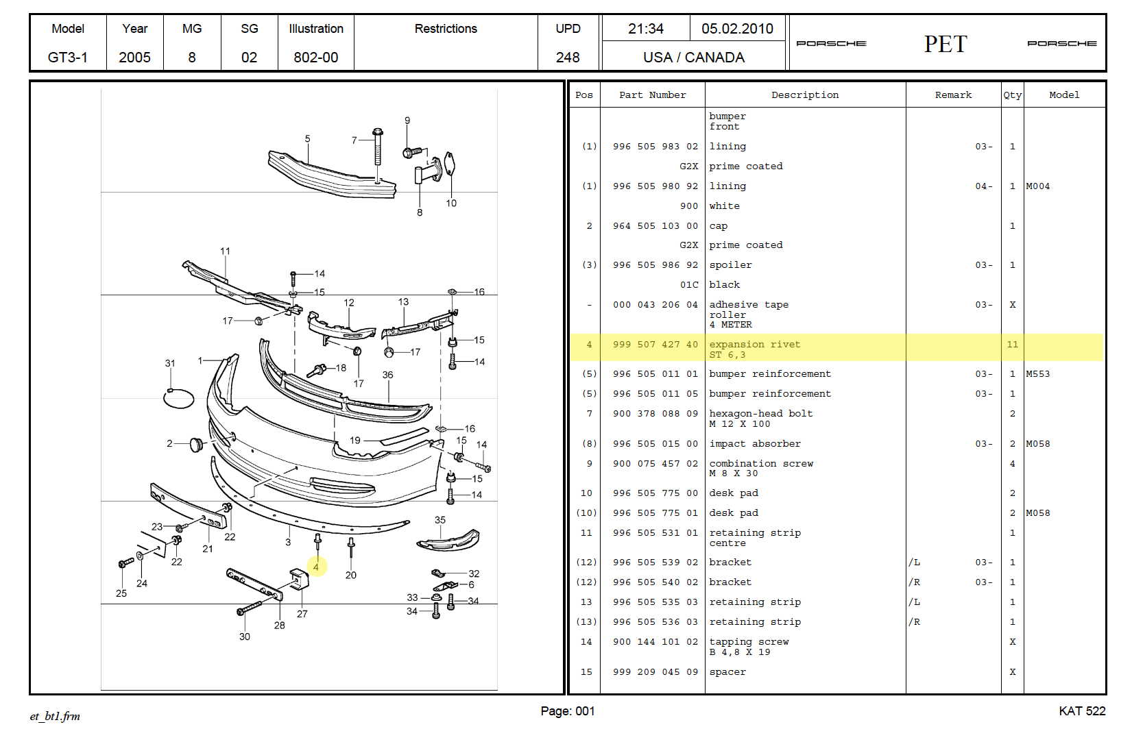 I'm assuming it's "999.507.497.40" which I acquired from TRG via Porsche Motor Sports when I purchased 2 CUP splitters (as insurance).