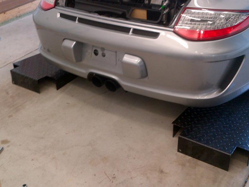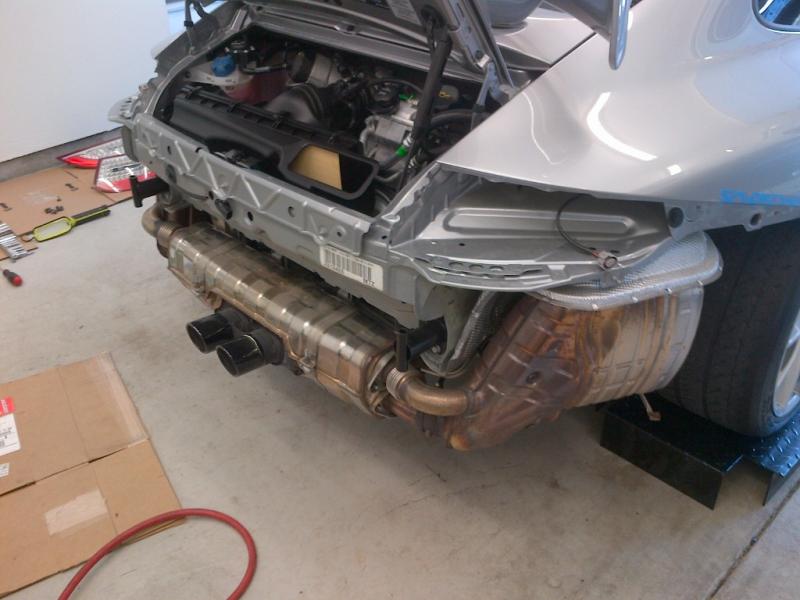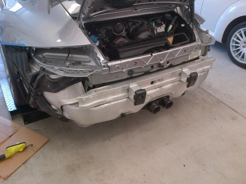 With the bumper cover removed, you can see the actual support and heat shield.