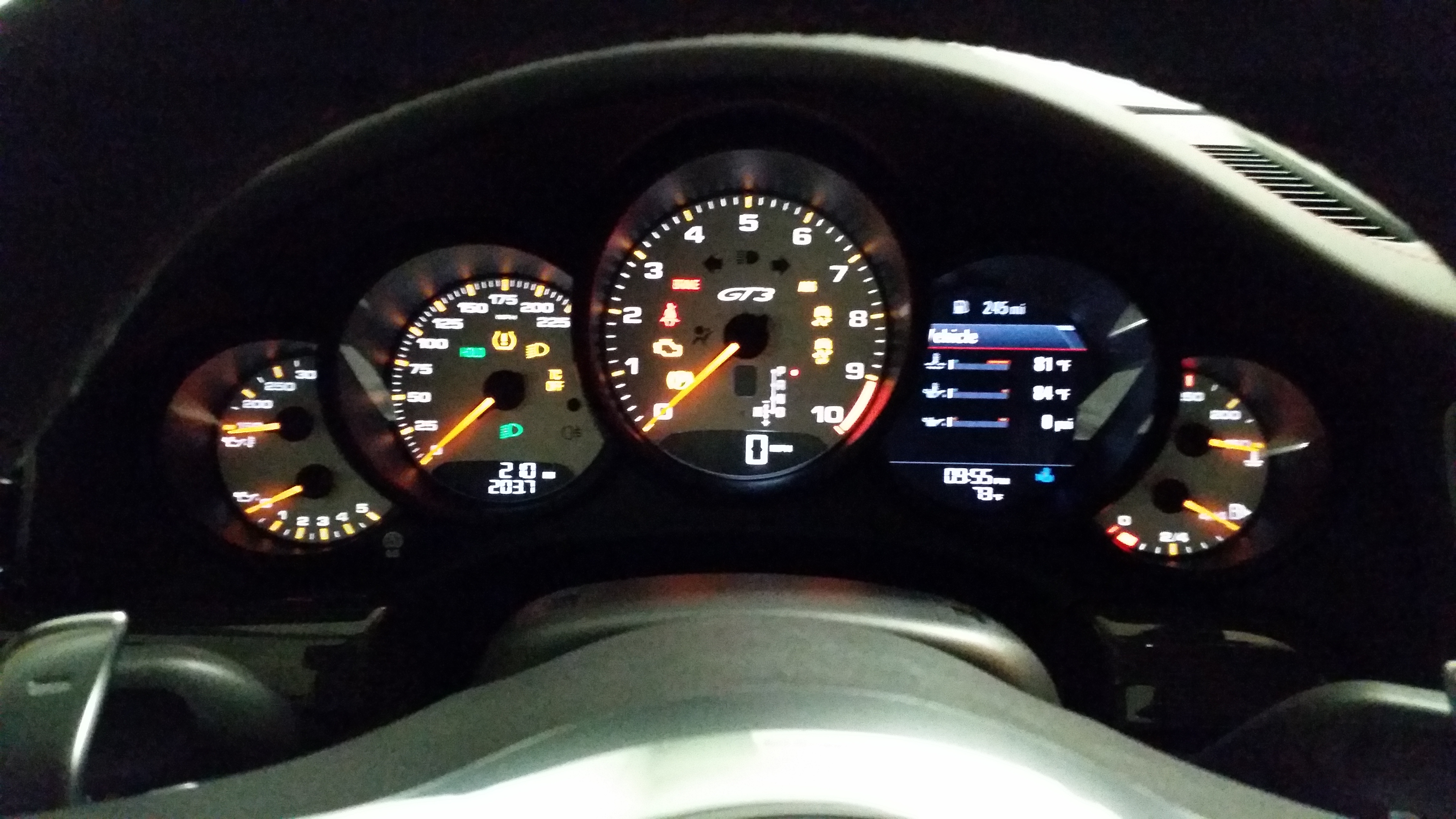 i always wanted to see how white dashboard , do you have by any chance a picture of them at night. with lights on. are they a pet annoying to read,