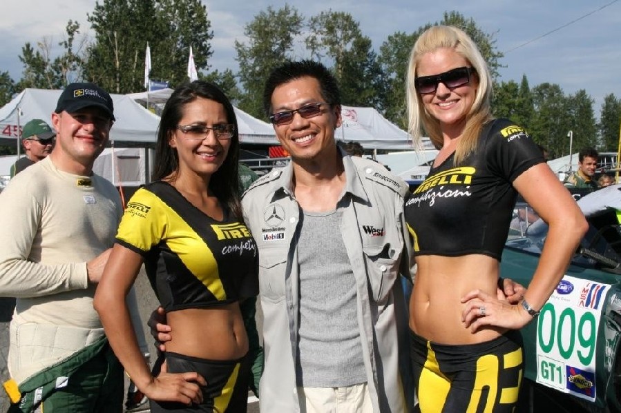 Thought everyone would enjoy a couple of pix from the Portland ALMS last Sat. Cars, Girls and weather where 100+ hot! Don't mind the happy guy in the center