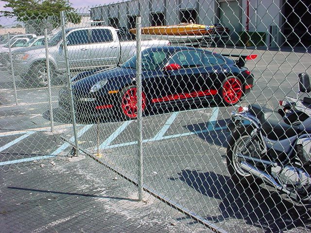 the fence is red where ever the car has red.