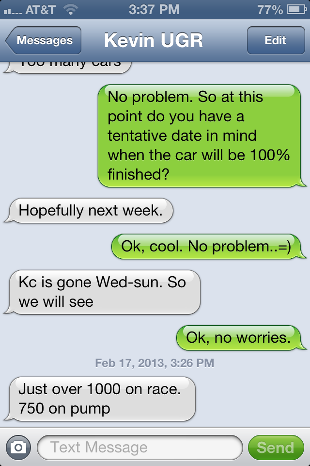 So Kevin went out and got me some VBOX numbers on race gas the other day. The car went WAY faster than I would have ever expected. He sends me a text with the following pic: