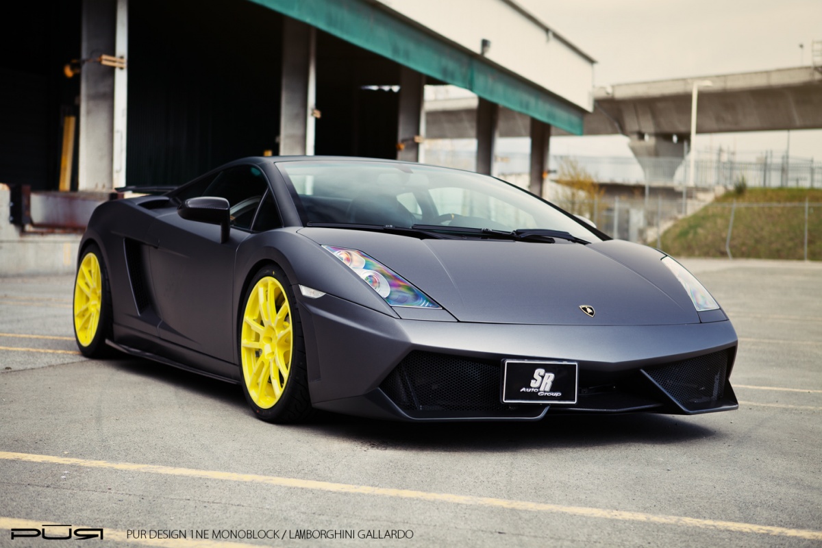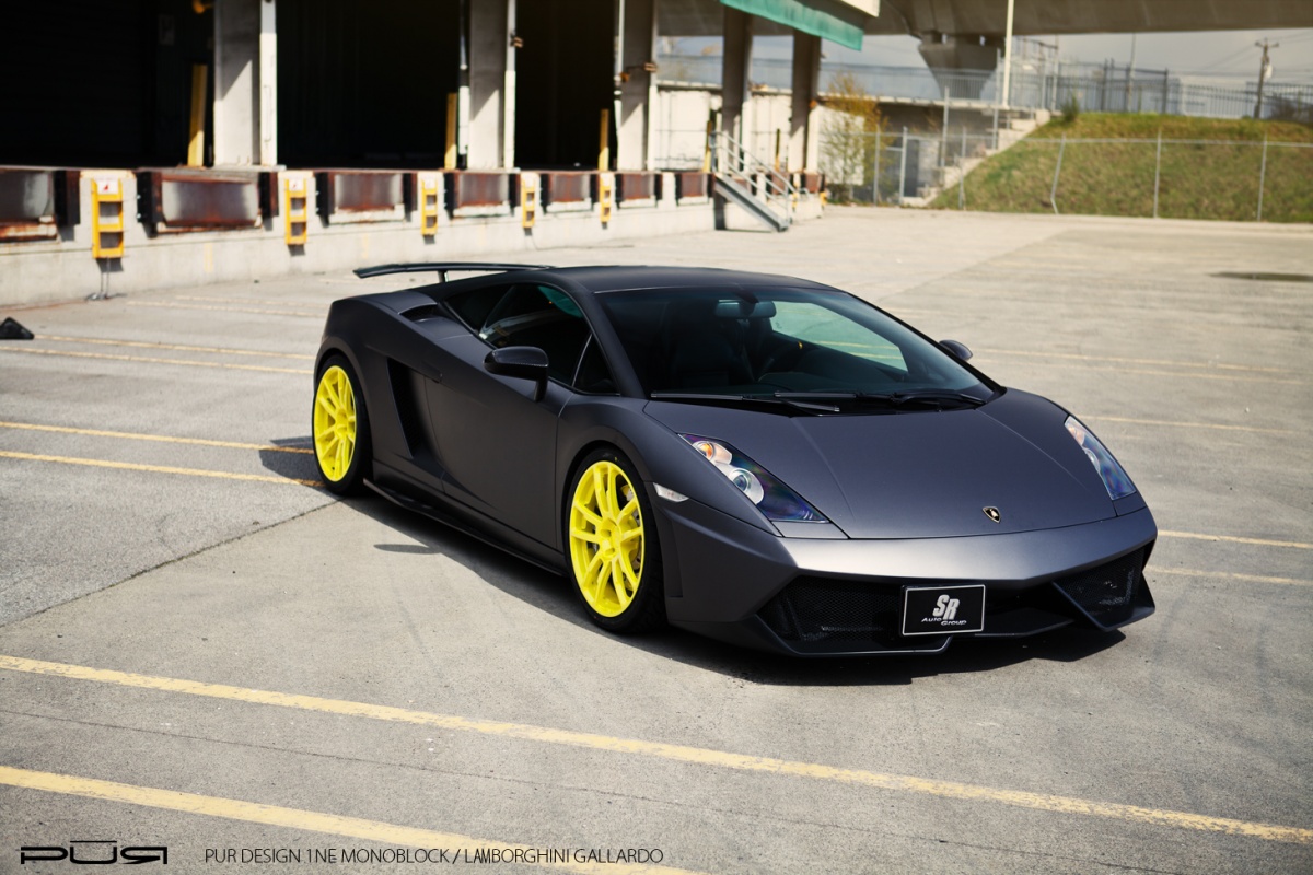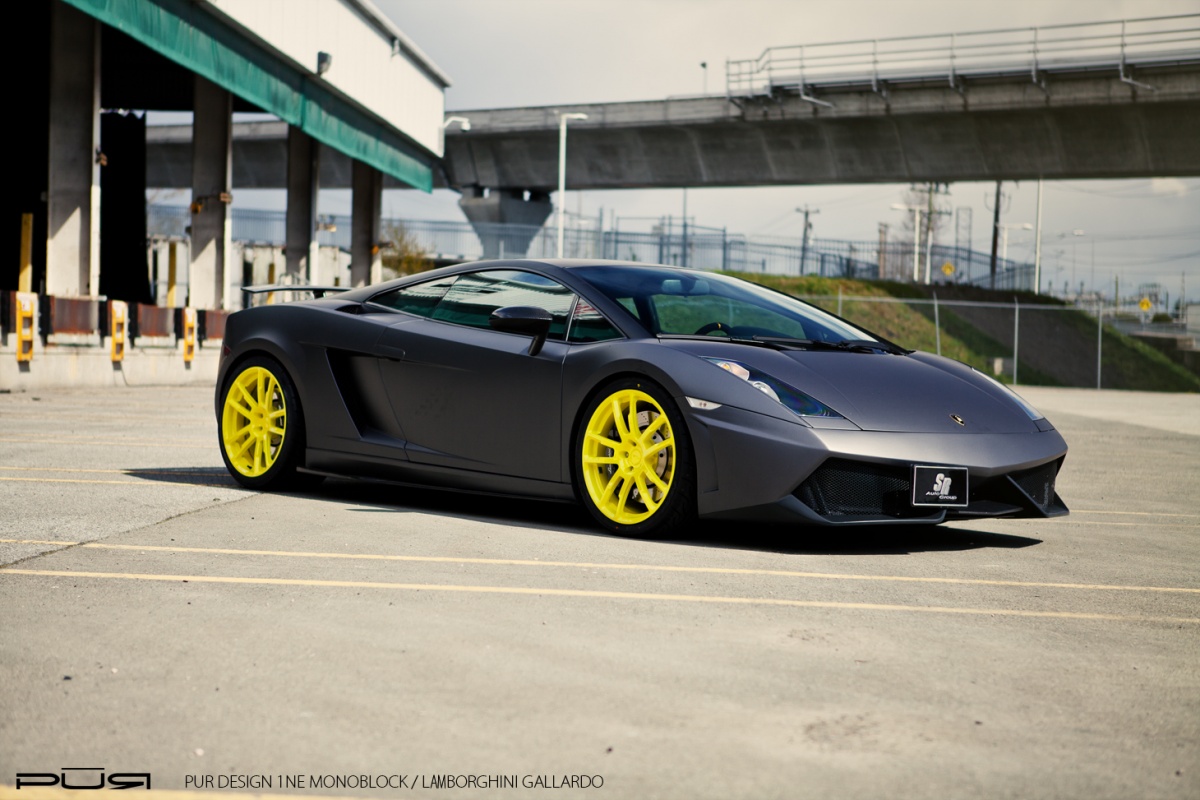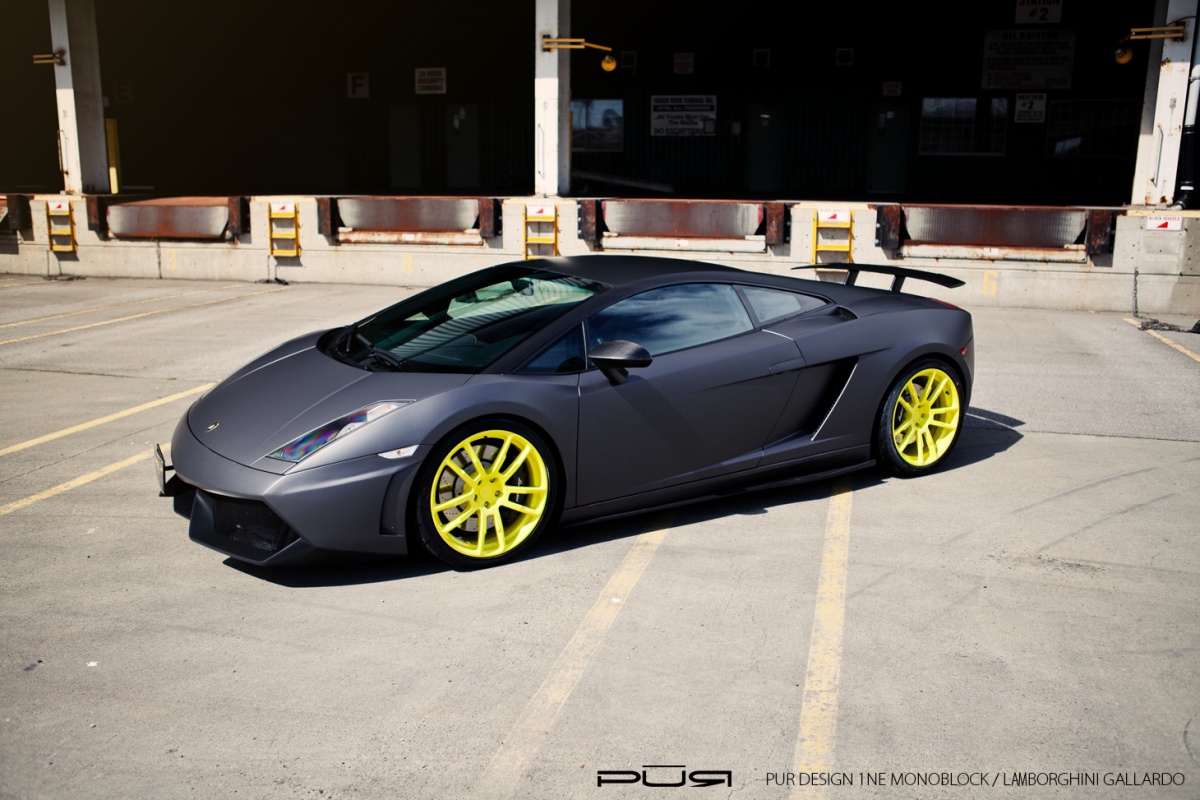 Here we have a Lamborghini Gallardo wearing a set of PUR 1NE monoblock wheels. The wheels measure 19x8.5 front and 19x11 rear and finished in Lamborghini's "Giallo Tenerife" yellow.