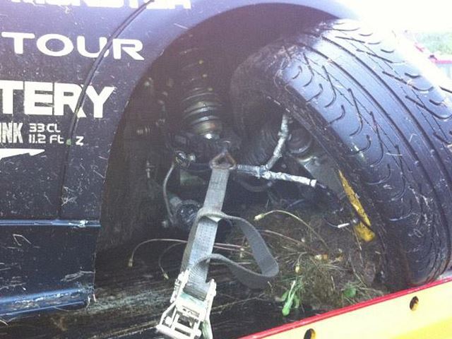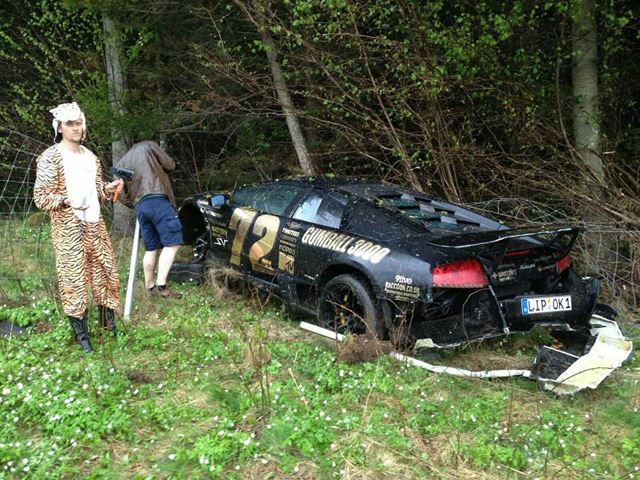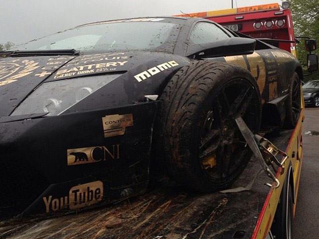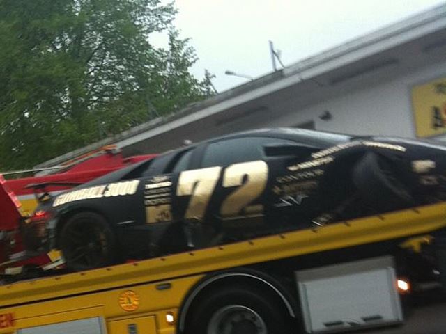 This year's Gumball 3000 road rally has claimed its first victim due to extremely wet conditions. Only hours after the 2013 Gumball 3000 kicked off in Copenhagen, a participating Lamborghini Murcielago LP670-4 SV has become the first victim of this year’s rally and its wet road conditions. The supercar somehow crashed on its way to the first checkpoint in Stockholm, Sweden. Exact details as to what caused the crash remain unknown but what is for certain is that this Murcielago has suffered some serious damage. The matte black Lambo appears to have somehow swerved off the main road and into the woods.