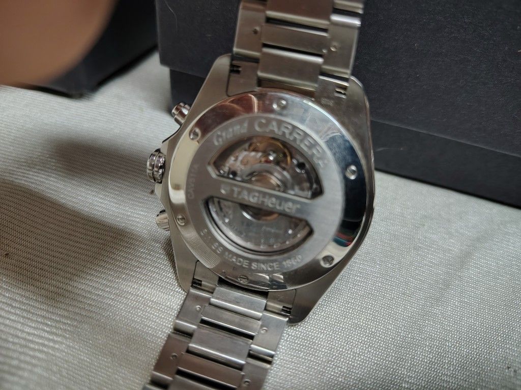 Tag Heuer Grand Carrera Calibre 17 stainless with original box, extra band links. Purchased from Crown and Caliber.