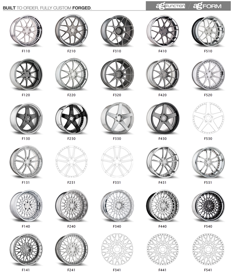 Avant Garde wheels pushes the boundaries beyond what is accepted as the status quote in the wheel industry as a manufacturer of superior quality wheels with performance driven engineering in mind.Realizing that even the best looking wheel can be ruined with improper sizing,Avant Garde engineers their wheels with proper fitments from the beginning.At Avant Garde, they are passionate not only about the quality of their wheels,but how the wheels are going to look on your vehicle. The Avant Garde Form & Function Wheel Line allows for fully customizable forged wheels created and personalized to the finest and smallest details.
