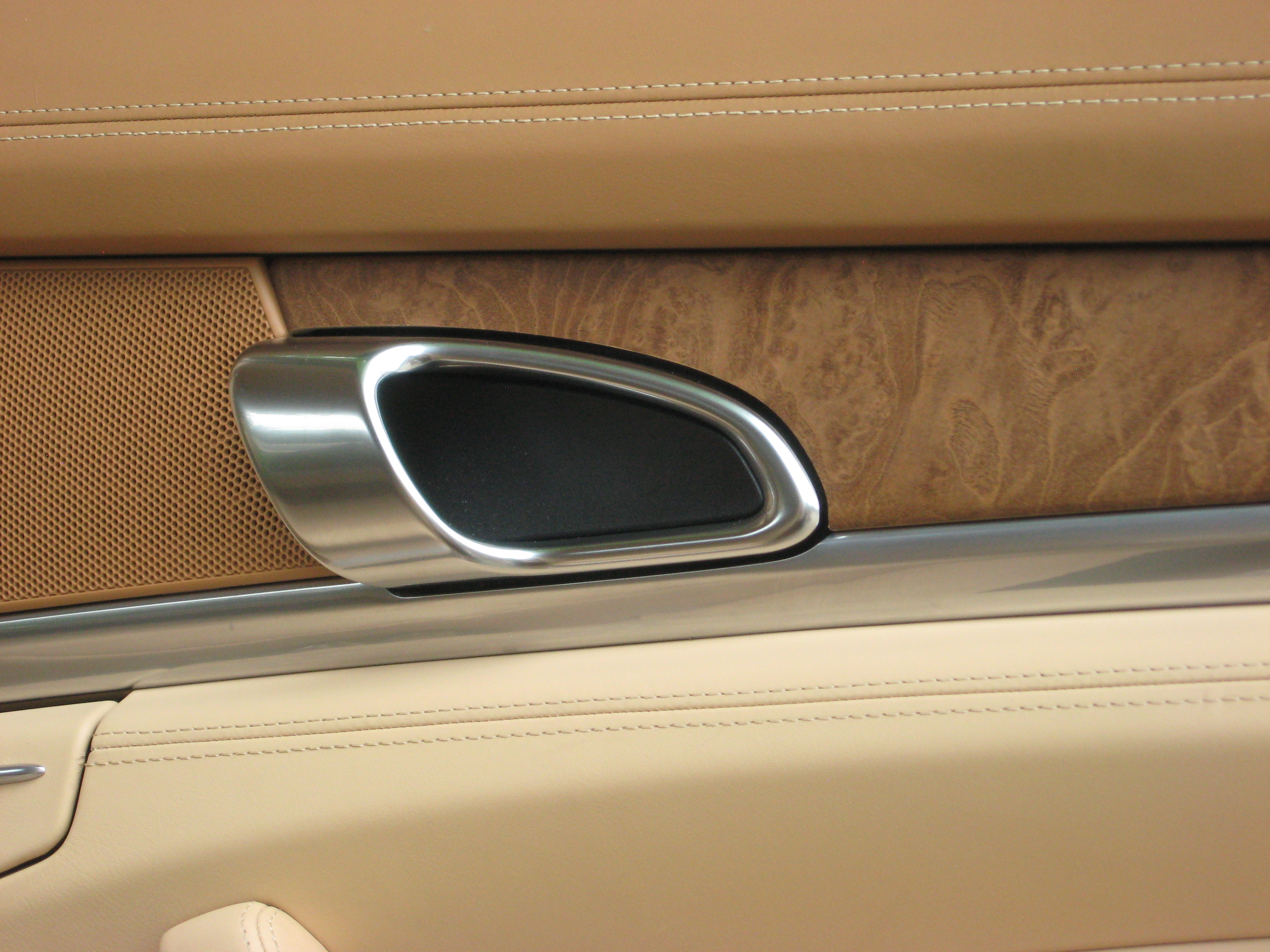 For anyone who hasn't seen the interior, some recent pics - it sure is in pristine condition. In addition to the stock 19" Panamera wheels (now mounted w/ snow tires) the car came w/ these crazy 20" custom wheels that are painted the same Cognac Metallic - I was concerned about too much bling for my tastes, but they look really nice and I get a lot of compliments on them, so you never know...