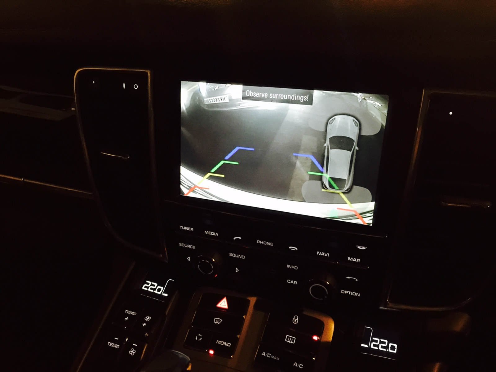 I can't stop laughing after reading your msg hahah. well the video of 2014 panamera shows a very good rear view and also has 360 degree view as well as side and front view.... you shouldn't be seeing the rear license plate at all... can someone else advice on this.