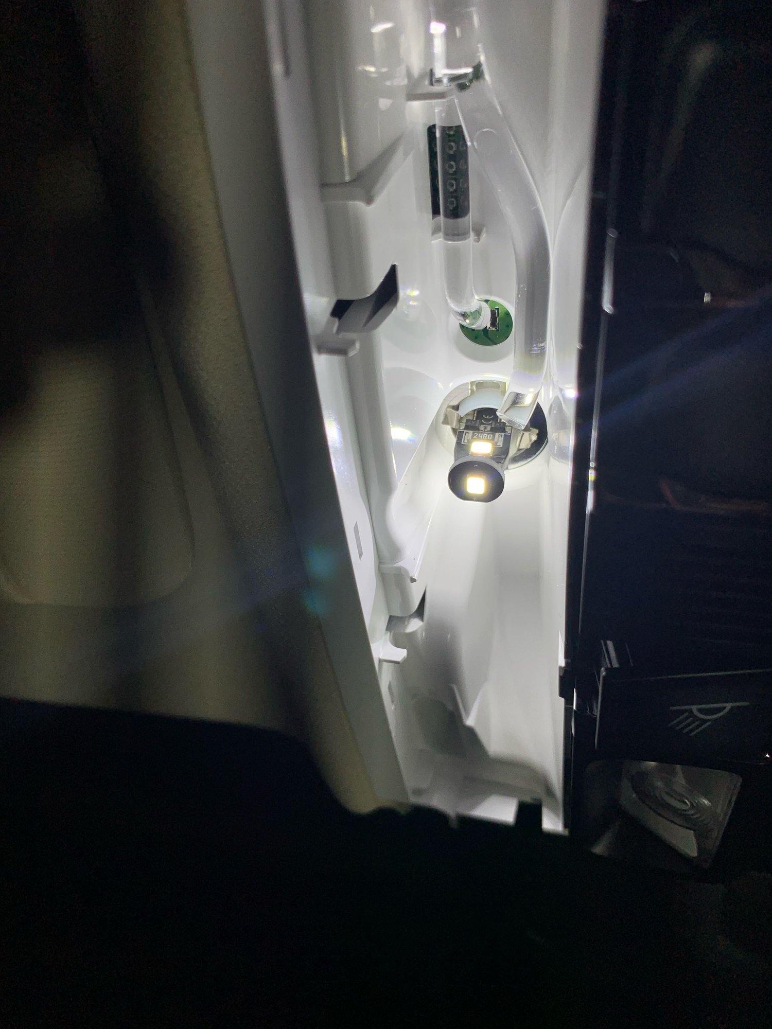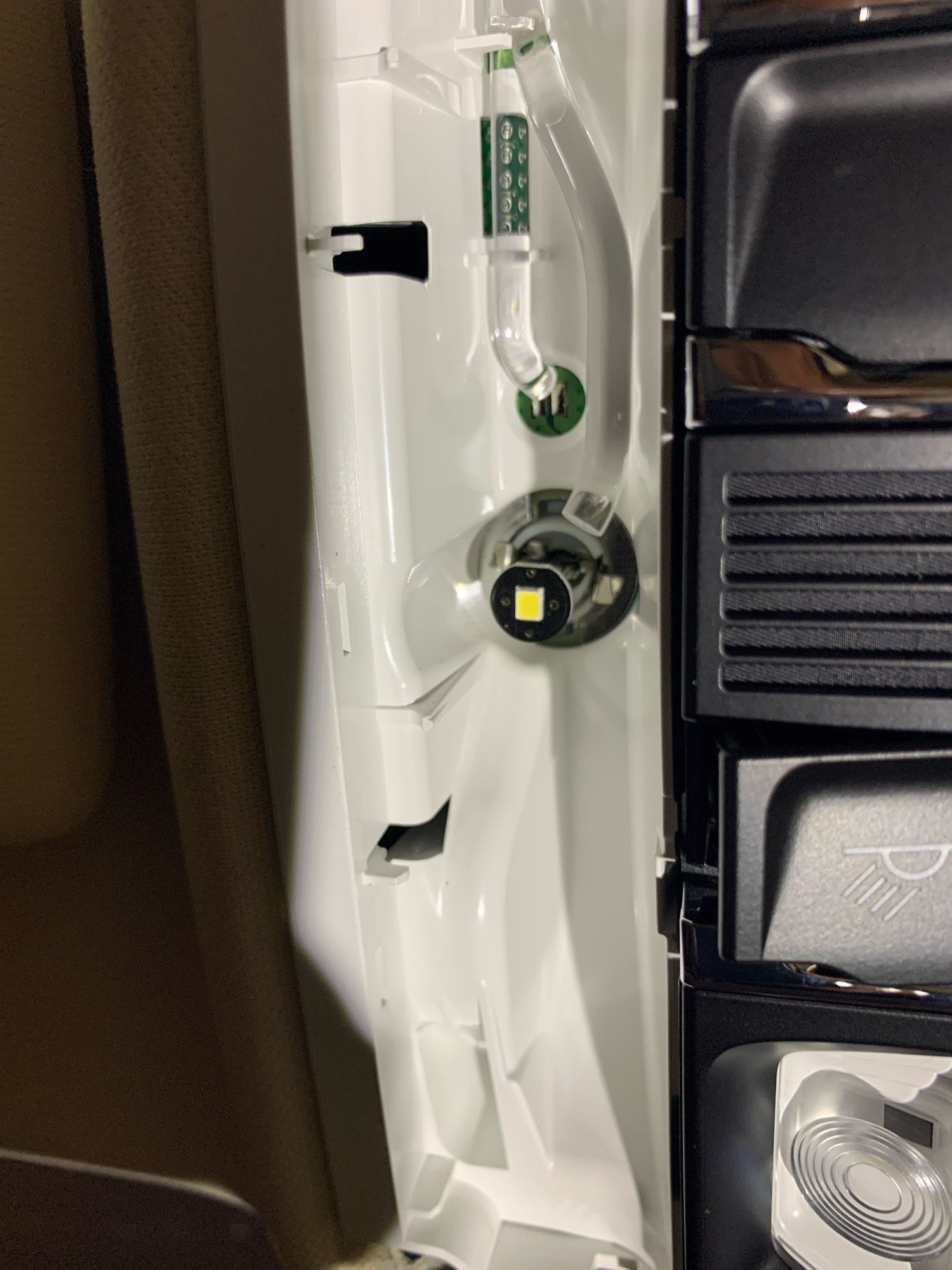 3. Pop our the incandescent bulbs and replace with LED. Assembly is the reverse but work slowly and use your trim tool to gently pry the clips (especially for the white trim piece) back into place (don't just try to push and force them back).