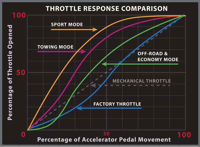 The sluggish pedal is a totally different phenomenon. That is the "throttle mapping". Below is an image I snagged from a google search (i.e. just a generic example, not an actual Porsche throttle map). It is simply a ratio of how much the computer tells the throttle to open based on how much torque the driver requests (how far down he pushes the A-pedal). The only thing that products like Sprint booster do is to exaggerate the curve of the throttle map to something like "sport++" with a large initial slope and a large "knee" where the throttle response flattens out in the second half of travel. Basically they take a throttle pedal that travels 4 inches and make it only use the first 2 inches of travel, so that when you push the pedal down 1 inch you say, "woah, this is so much faster!" but it really isn't any different than if you had just pushed your pedal down 2 inches before installing the sprint booster.