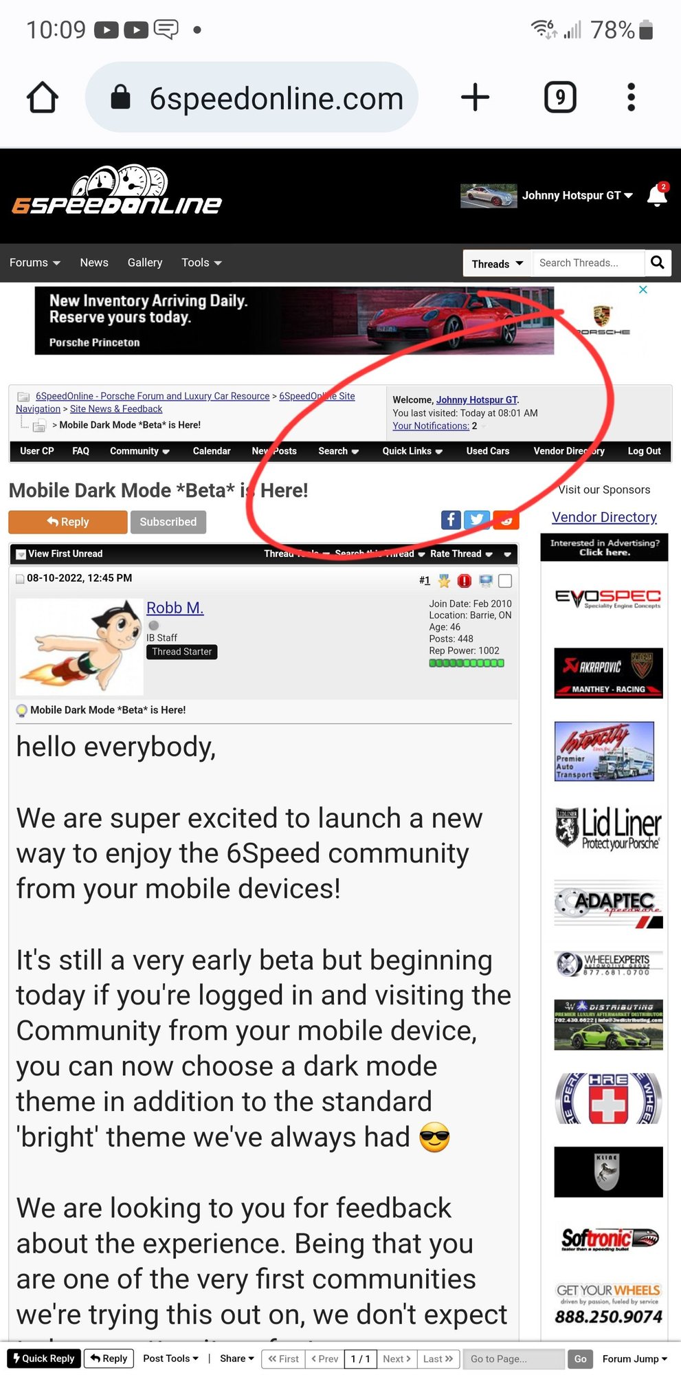 It's still a very early beta but beginning today if you're logged in and visiting the Community from your mobile device, you can now choose a dark mode theme in addition to the standard 'bright' theme we've always had 😎