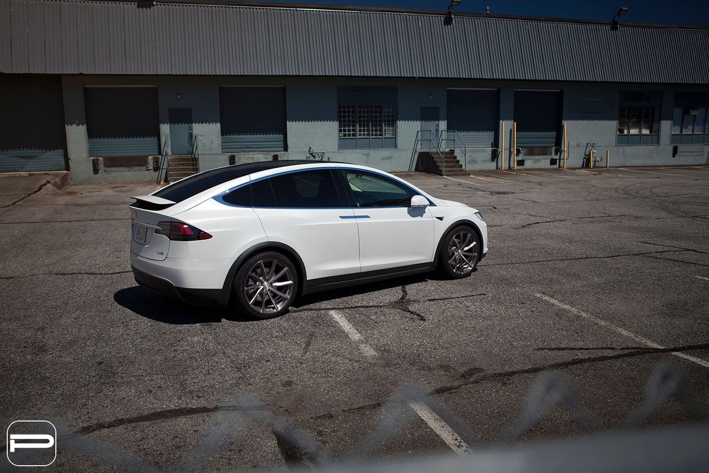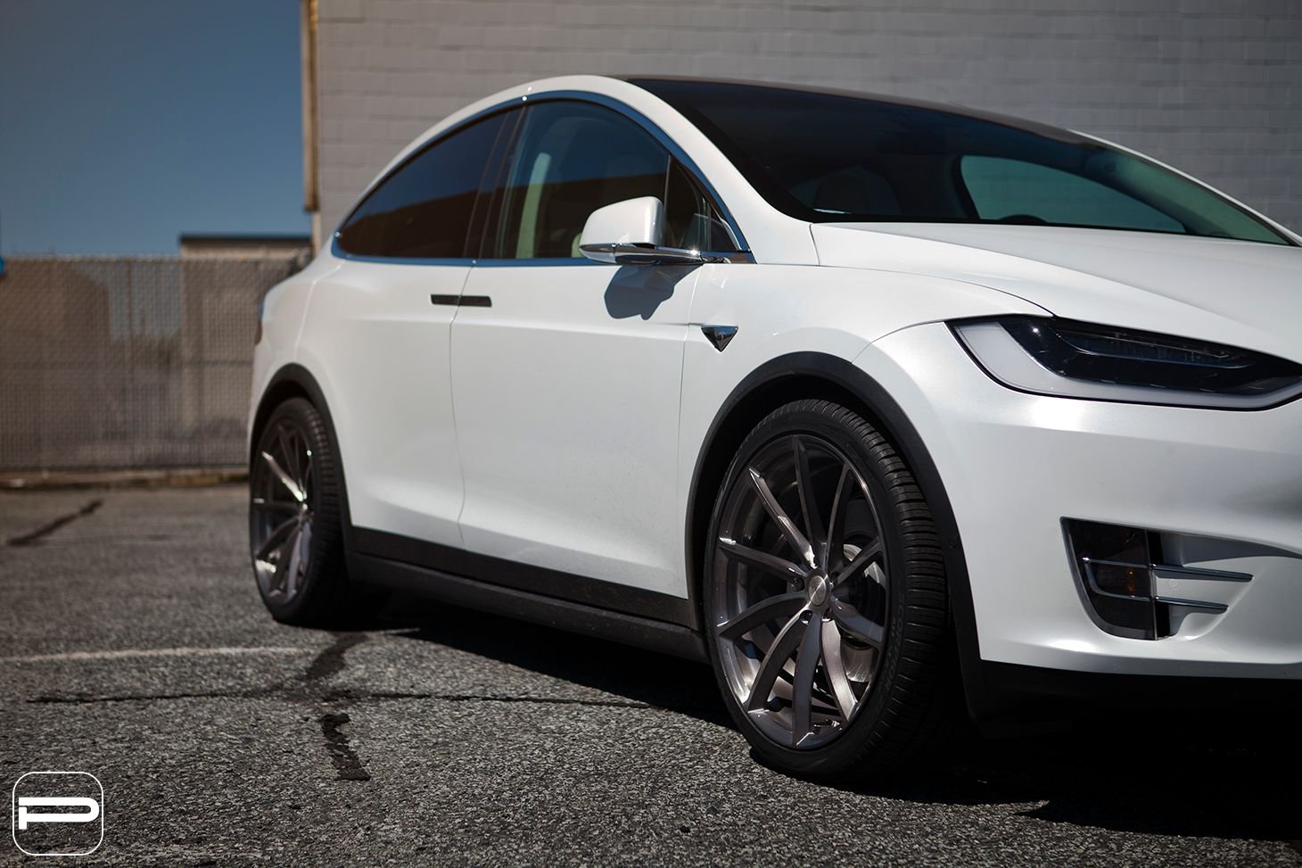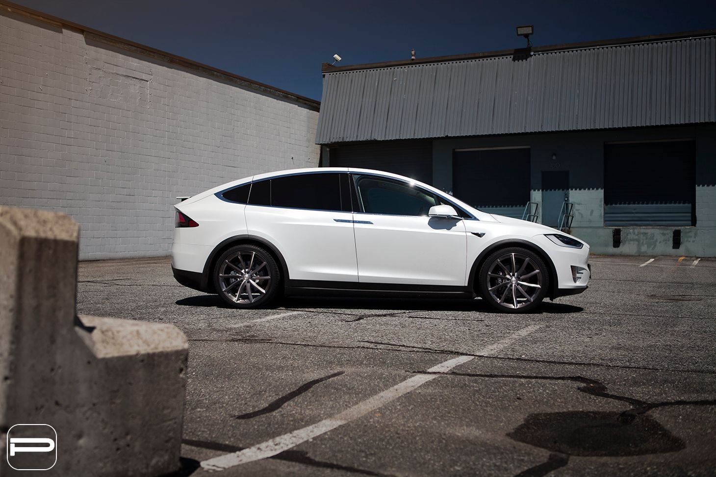 Good evening! The owner of this Model X wanted a directional wheel that we’ve never installed on a Model X before. After looking through our collection, we agreed to create the first set of PUR RS08’s for this platform. The RS08’s were engineered in a staggered twenty two inch fitment and finished in our Lumiere grey colour. We added a unique touch by cutting the wheels to fit the factory Tesla center caps.