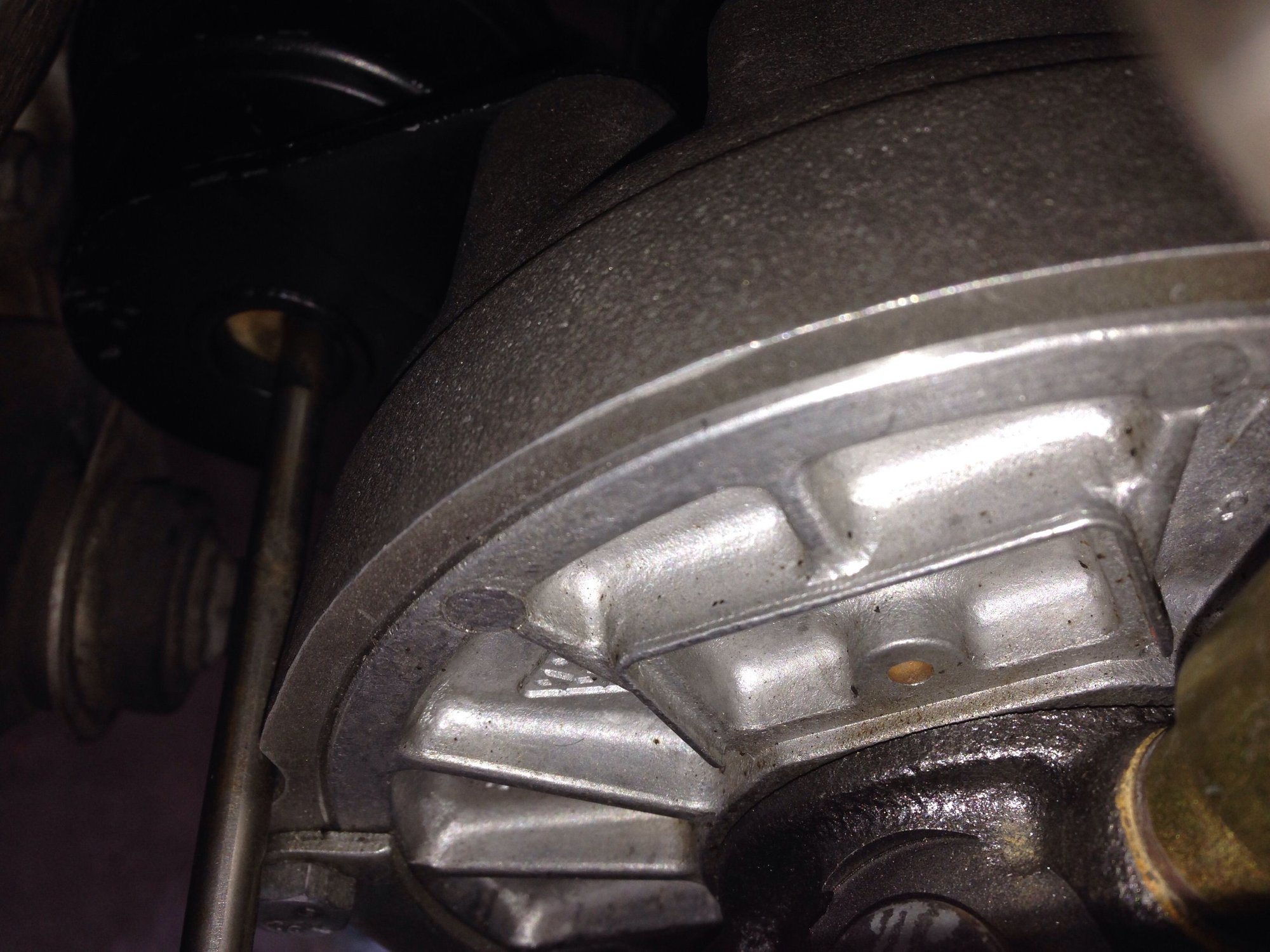 Scratch that. The air is not coming out of that plug. It's coming out of this hole on the back of the Compressor housing Plate where a plaque was riveted to it. WTF? The one on the other turbo looks the same but not sure if it is also leaking. Will check that out.