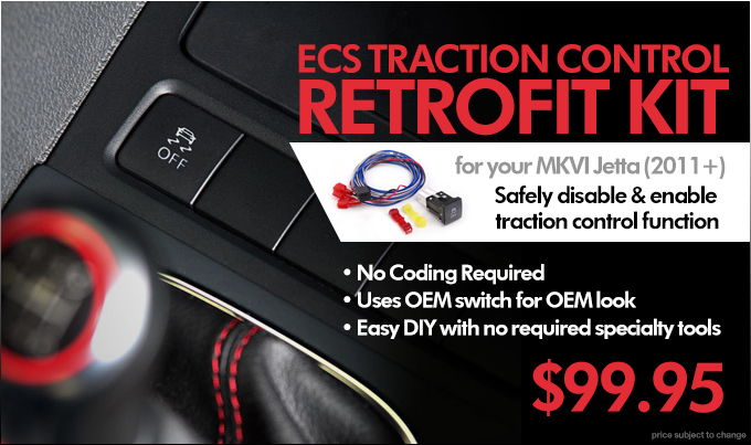 You've probably noticed a cut in power when accelerating out of a turn or from a stand still. The MKVI Jetta does not feature an in-cabin switch to turn off the traction control system, but ECS Tuning offers a complete kit to give you this function.