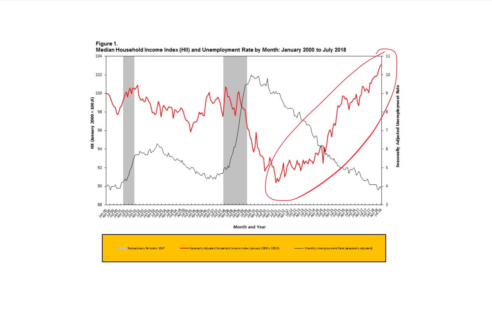 Trends Trends Trends. This is by and large the same economy we’ve experienced since the recession. Wages have been stagnant under both too.