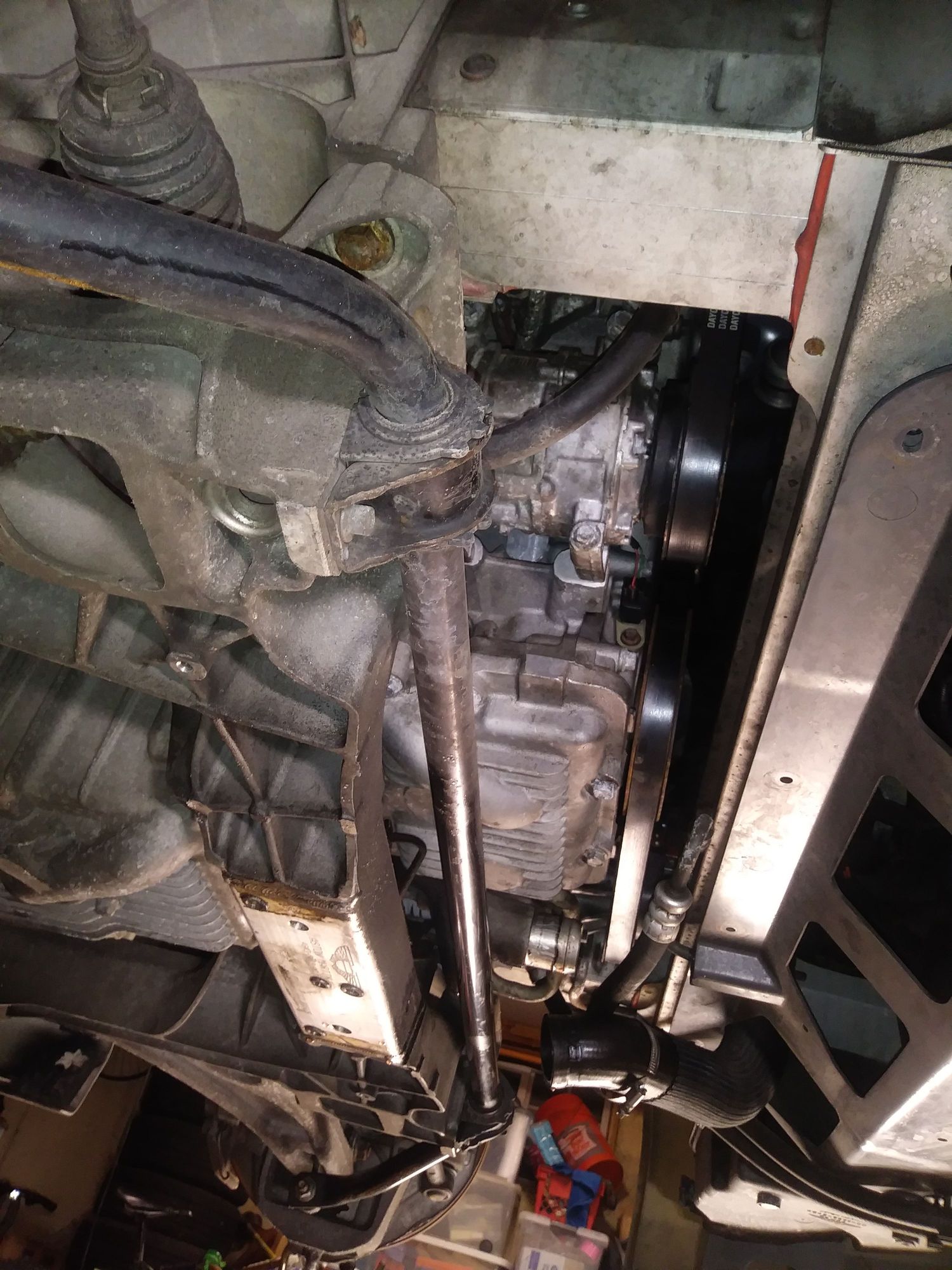 front of motor - note steering gear and sway bar